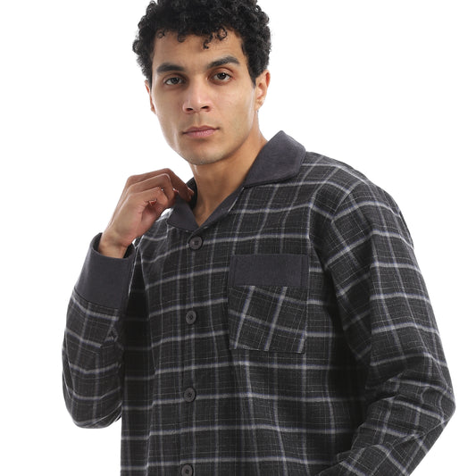 D120 قميص نوم فيسكوز مشجر كم طويل بسفرة