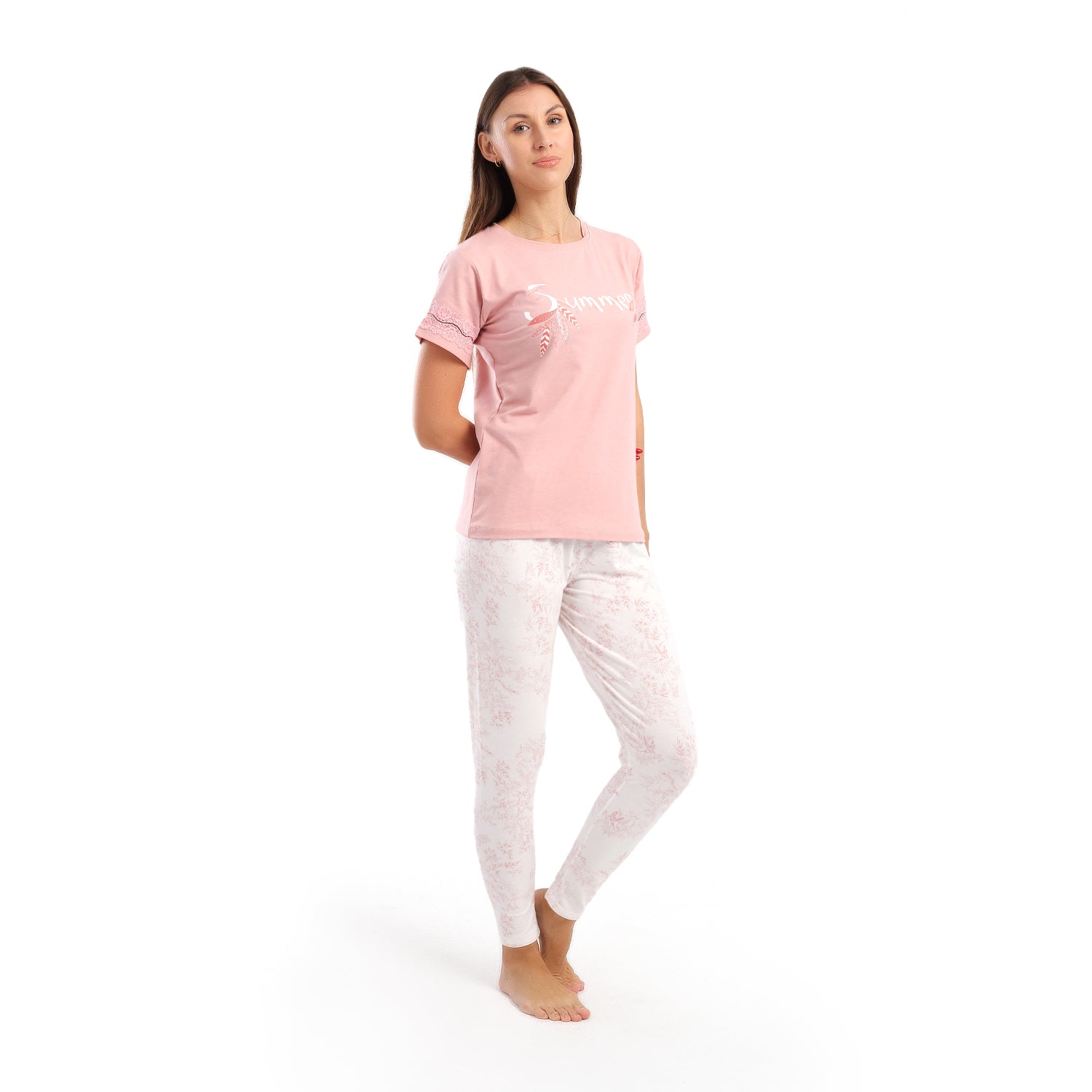 بجامة حريمي نصف كم بنطلون مشجر مريحة وعملية مصنوعة من أجود الأقطان المصرية