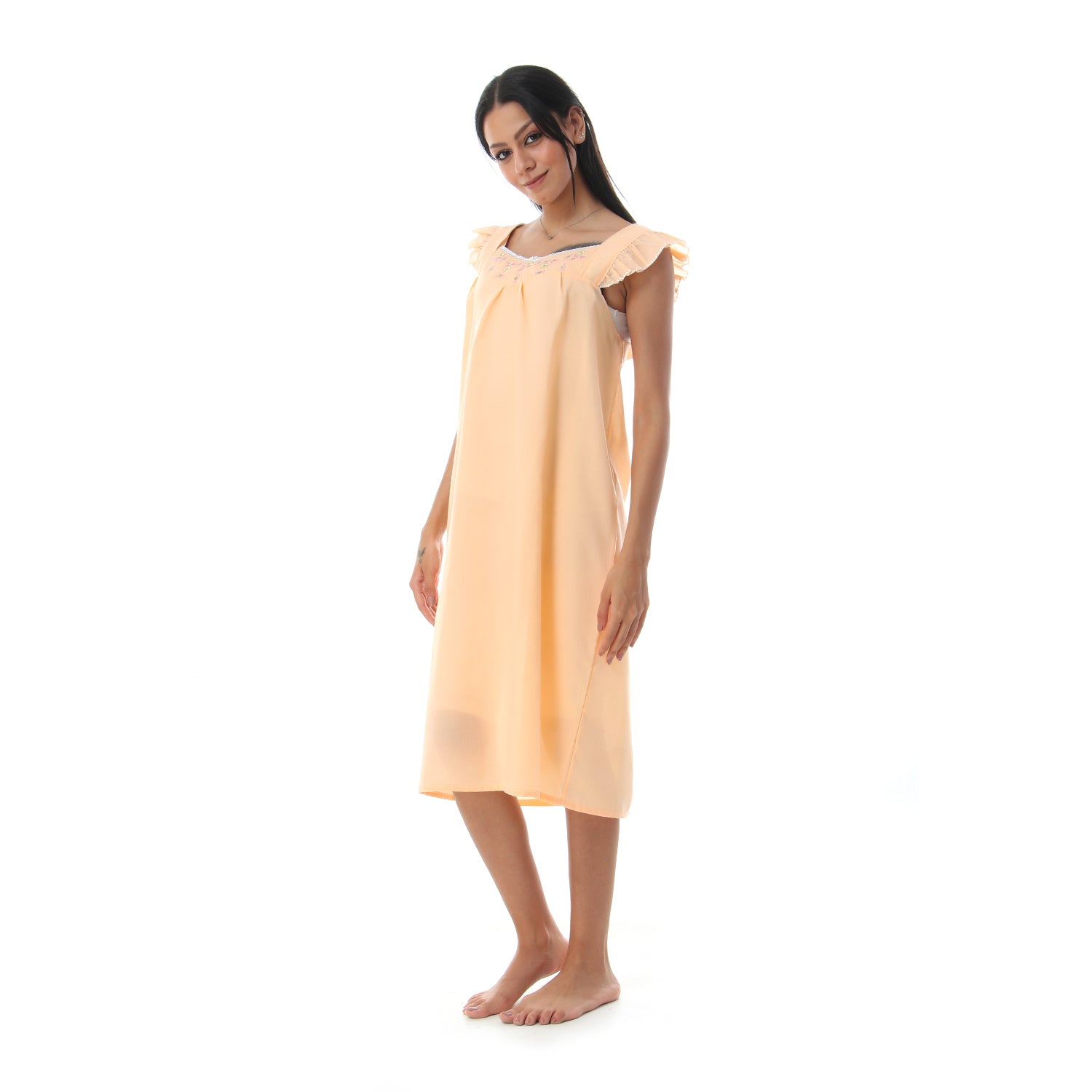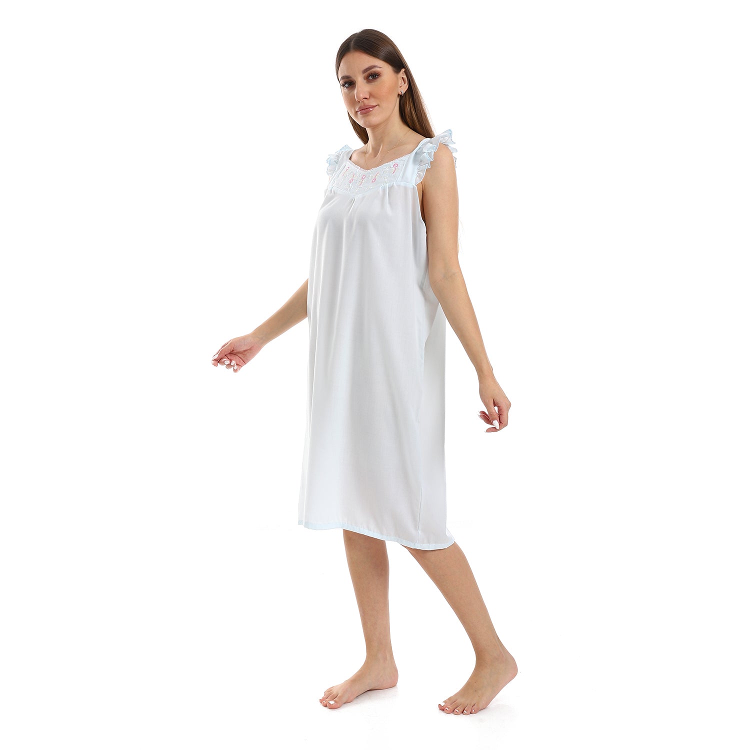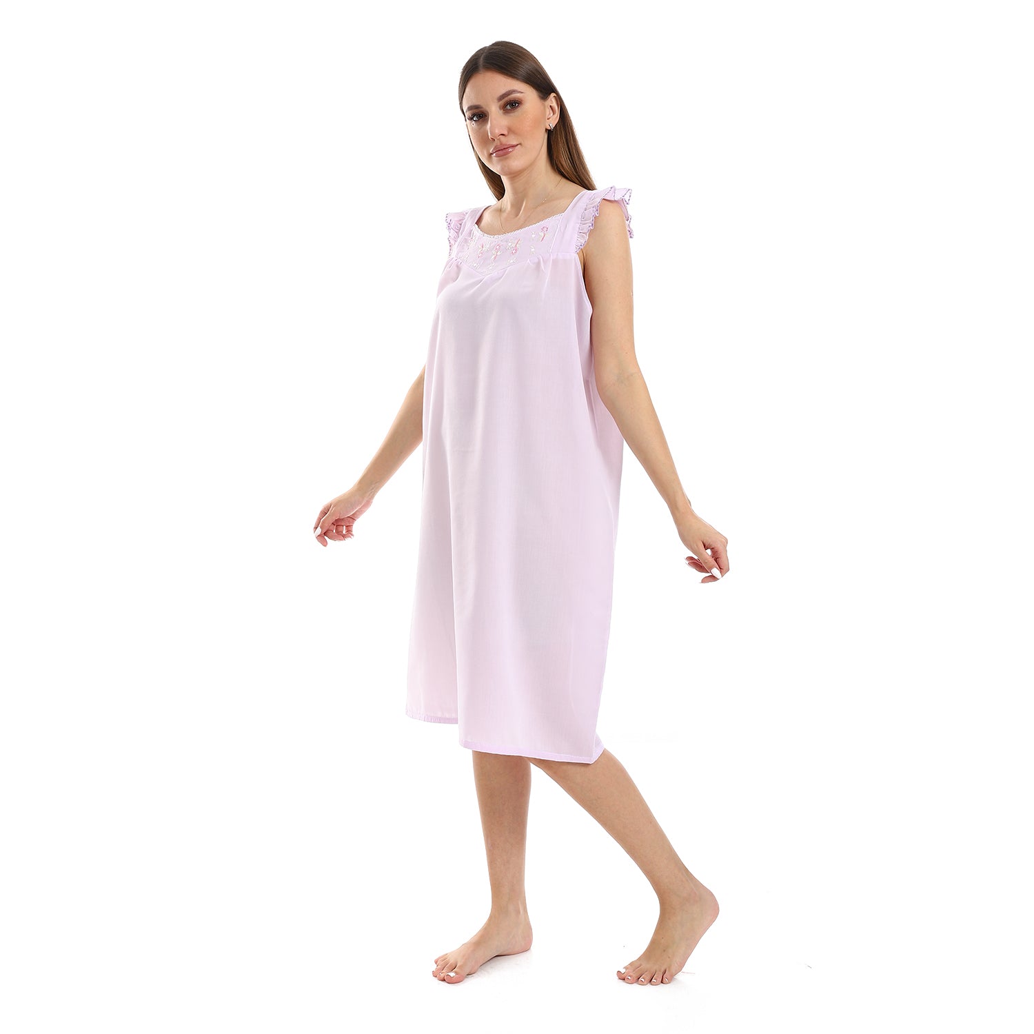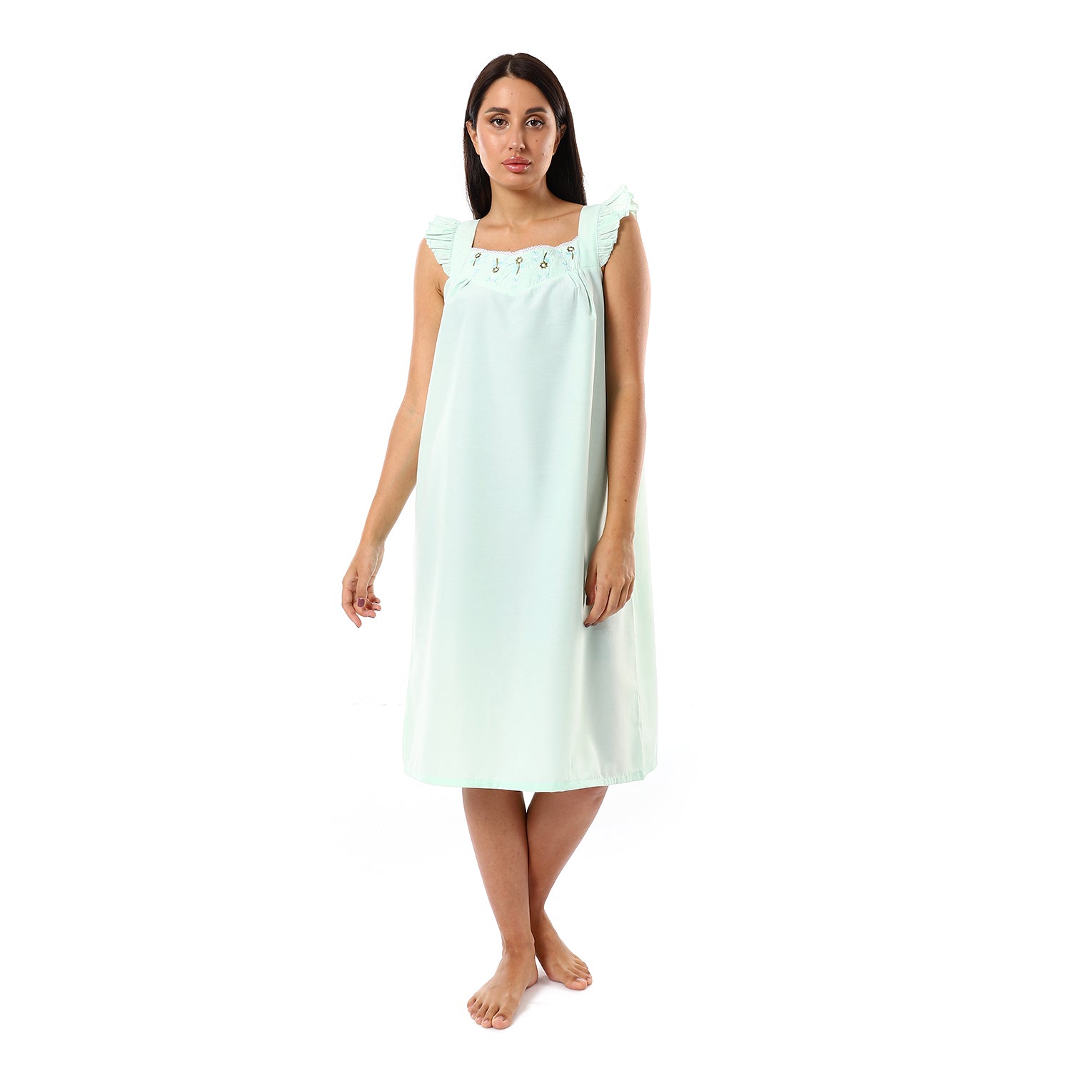 قميص نوم كت مطرز الصدر مربع
