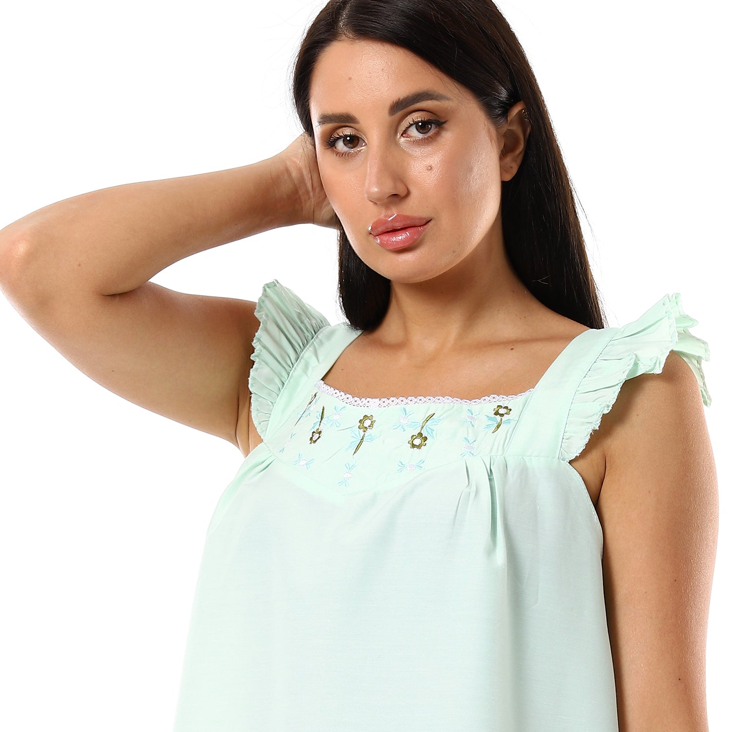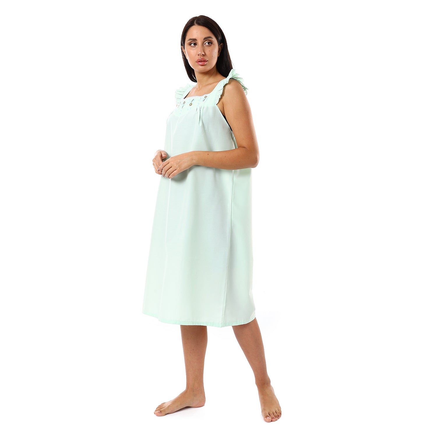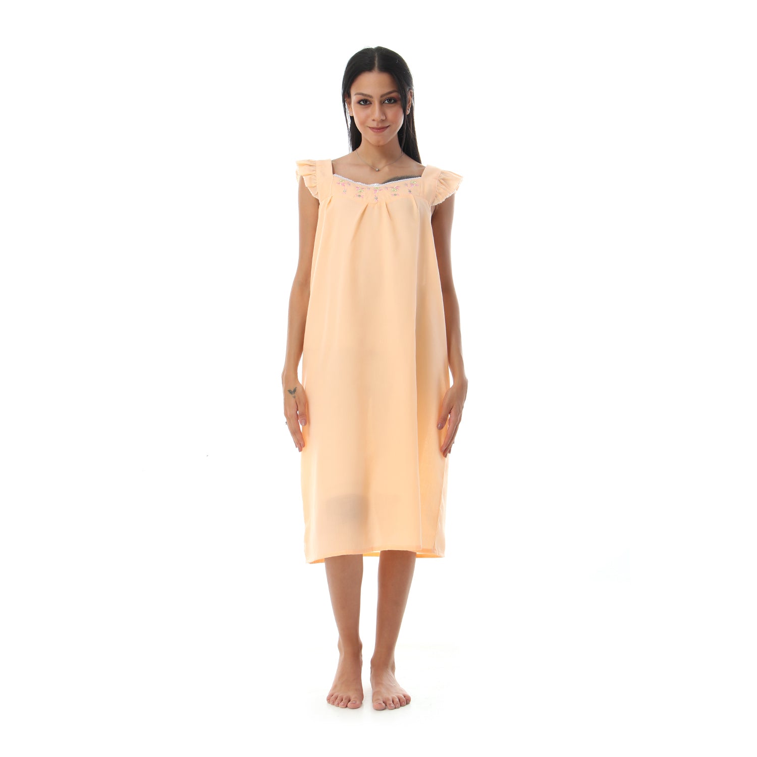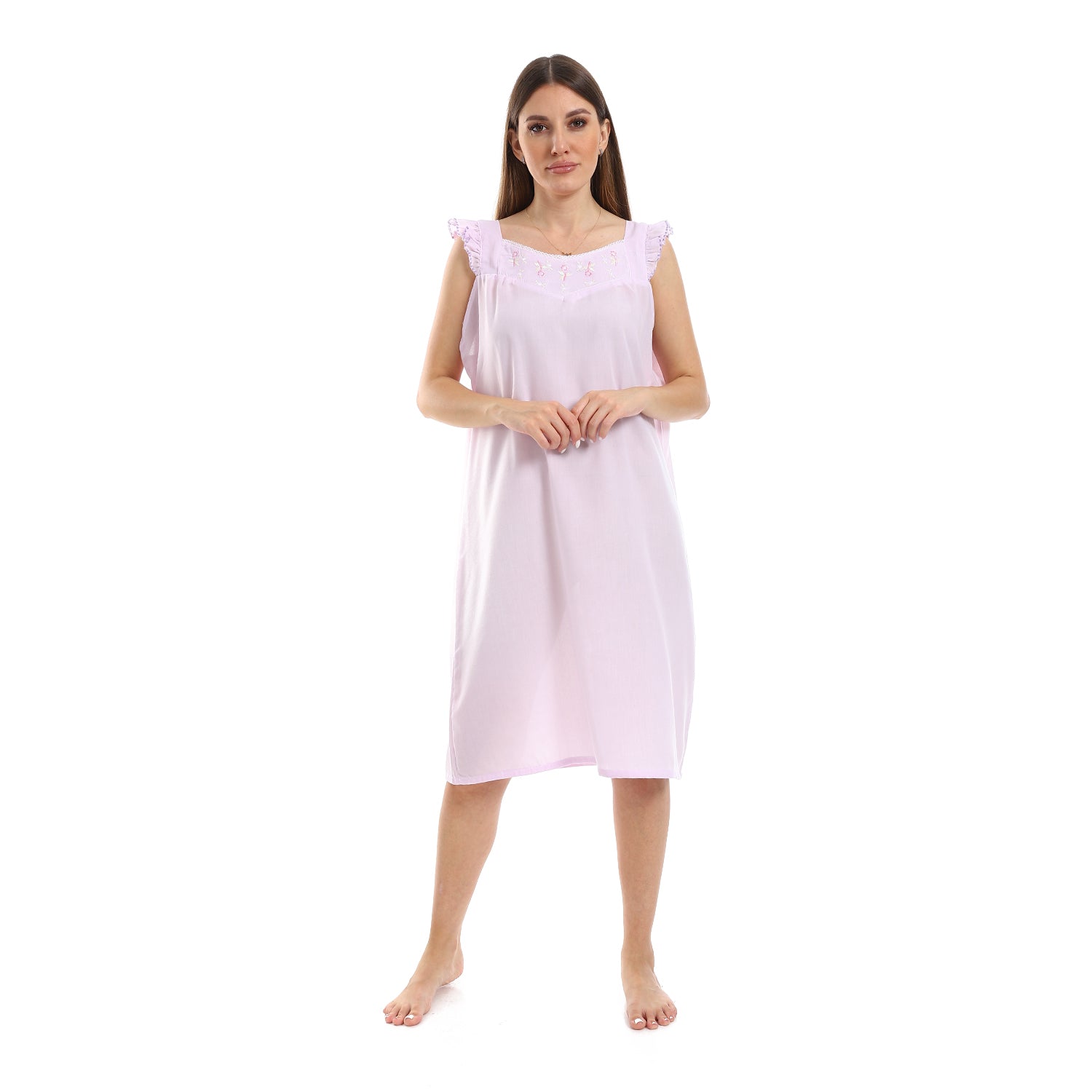قميص نوم كت مطرز الصدر مربع
