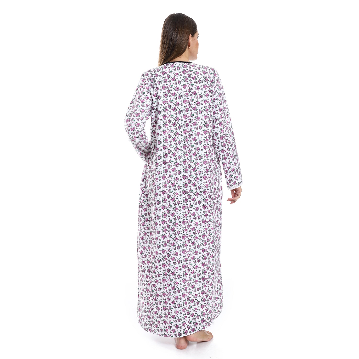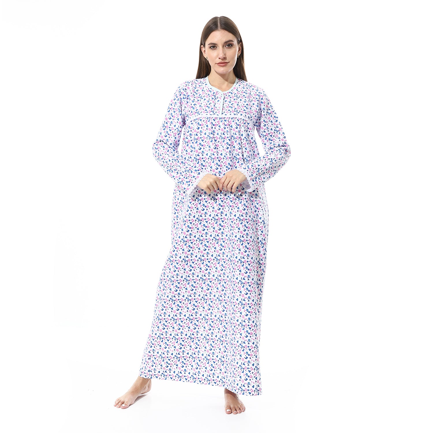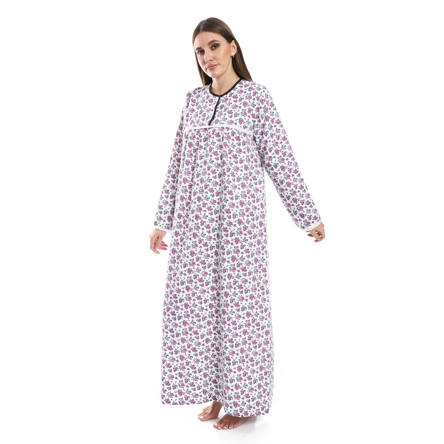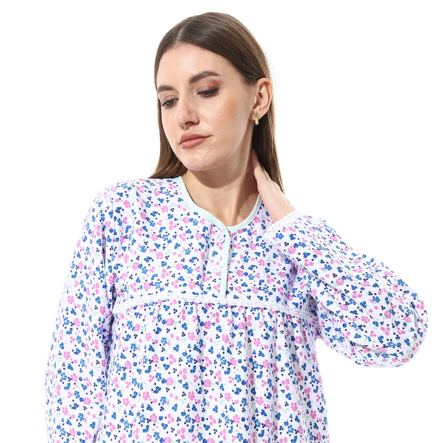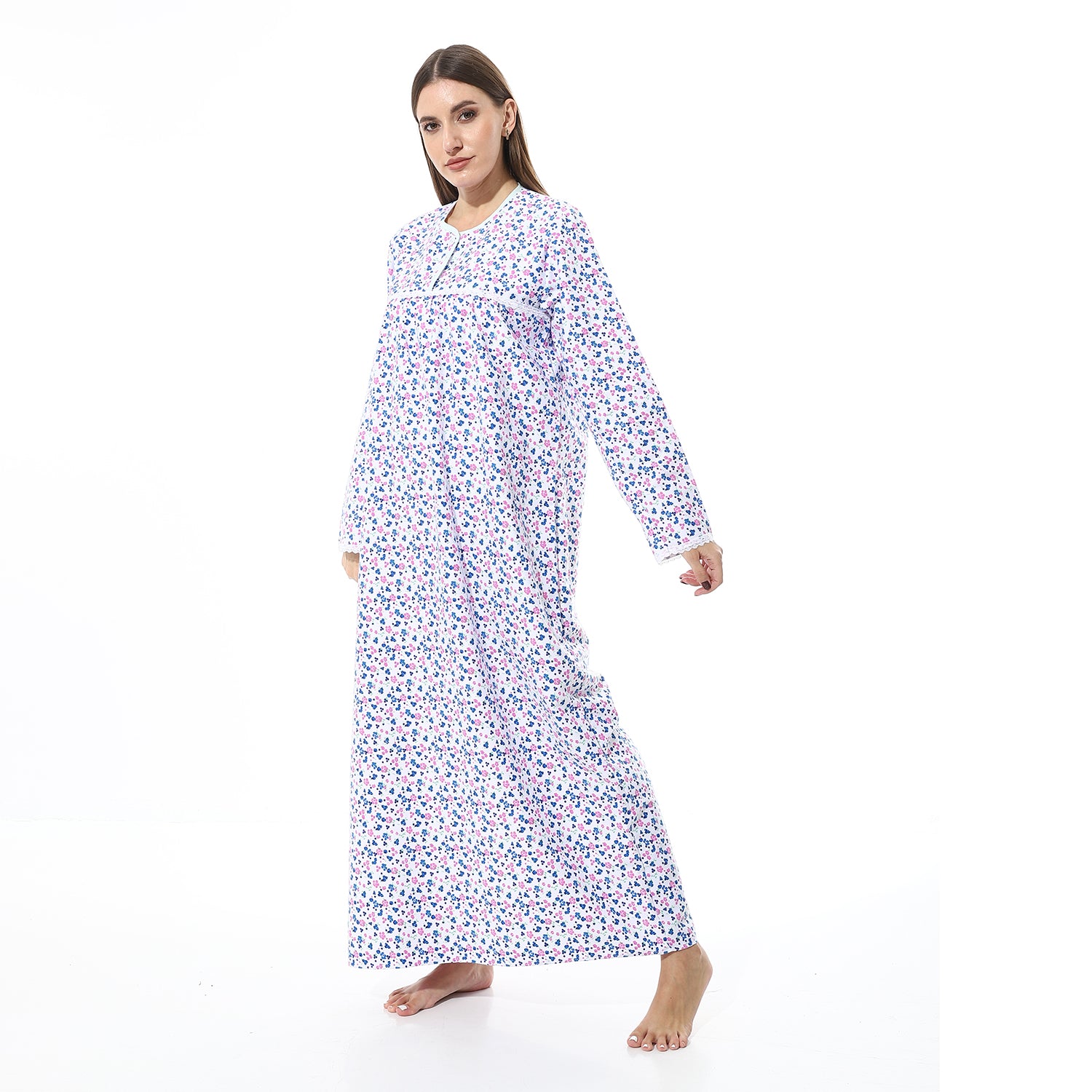 قميص نوم شتوي مشجر كم طويل كستور بالدانتيل