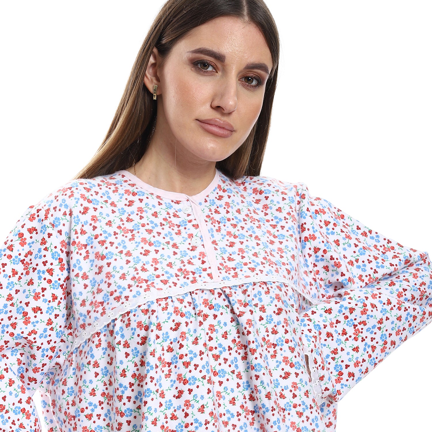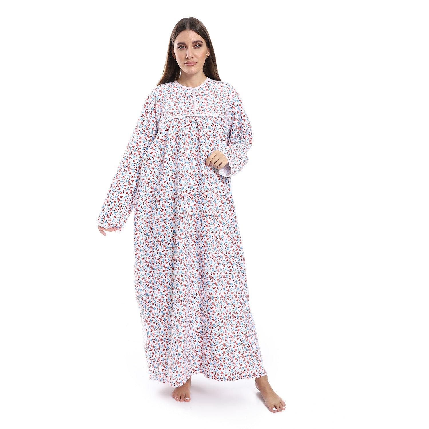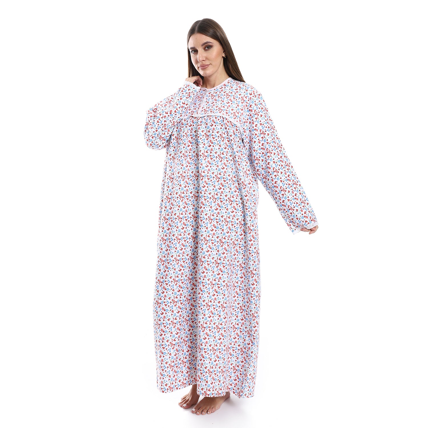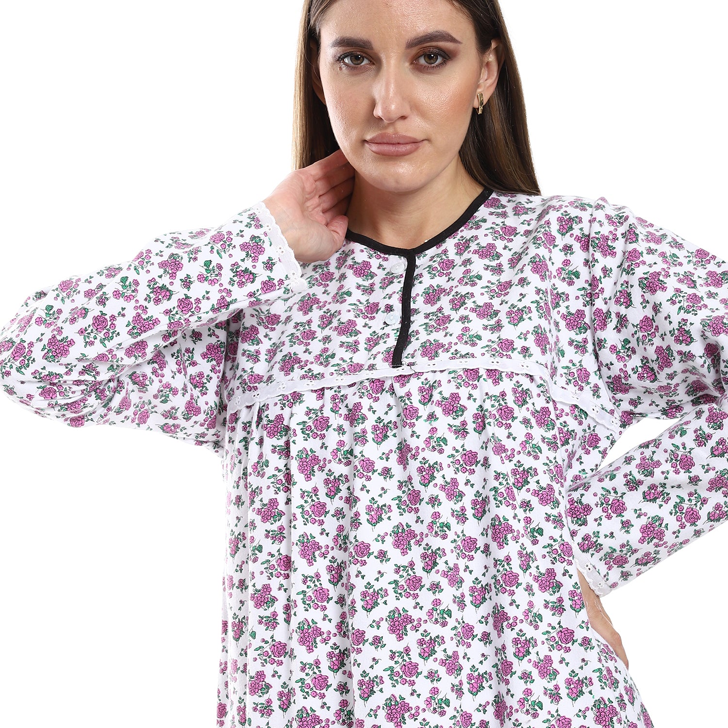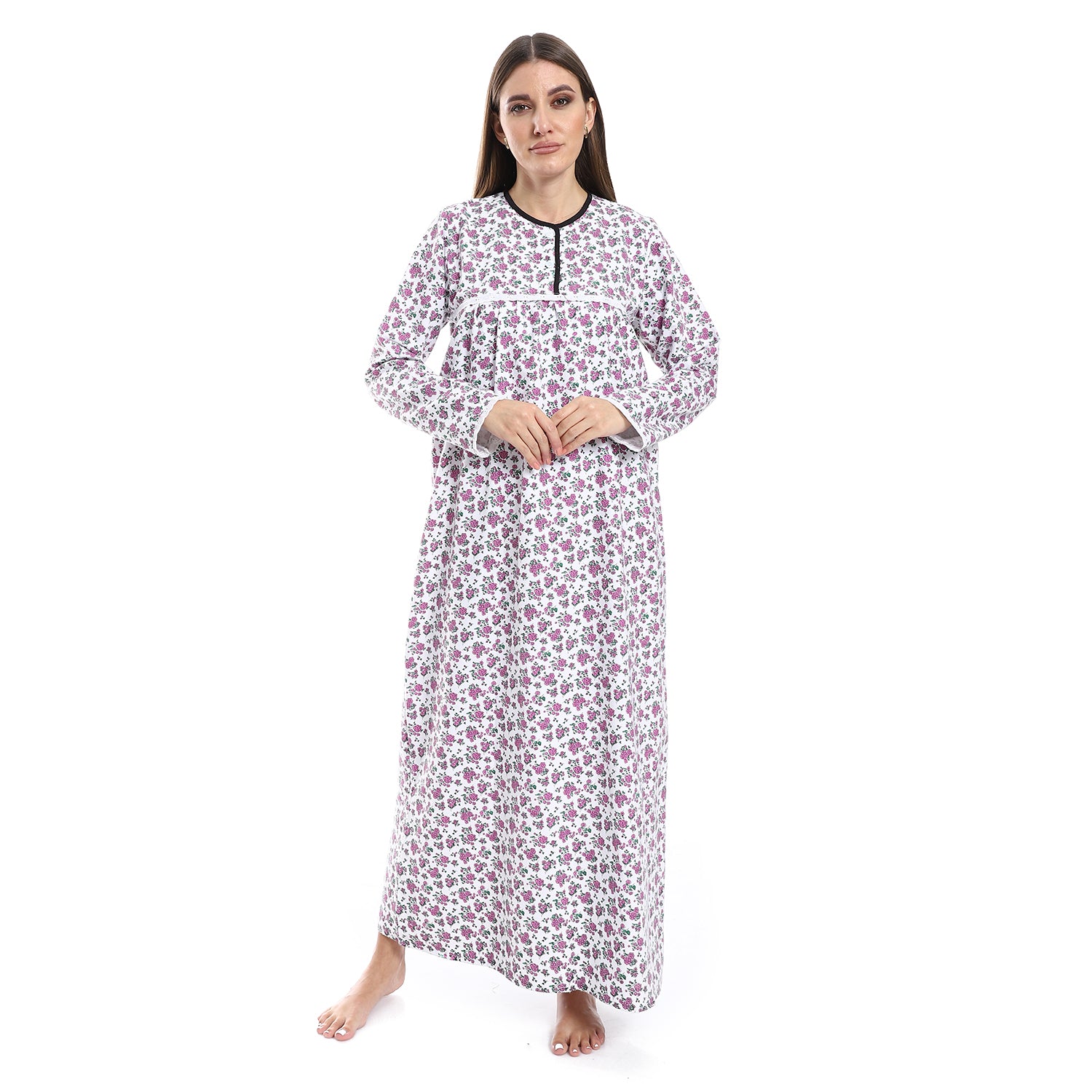 قميص نوم شتوي مشجر كم طويل كستور بالدانتيل