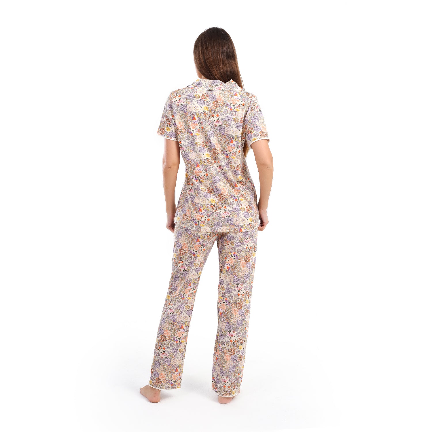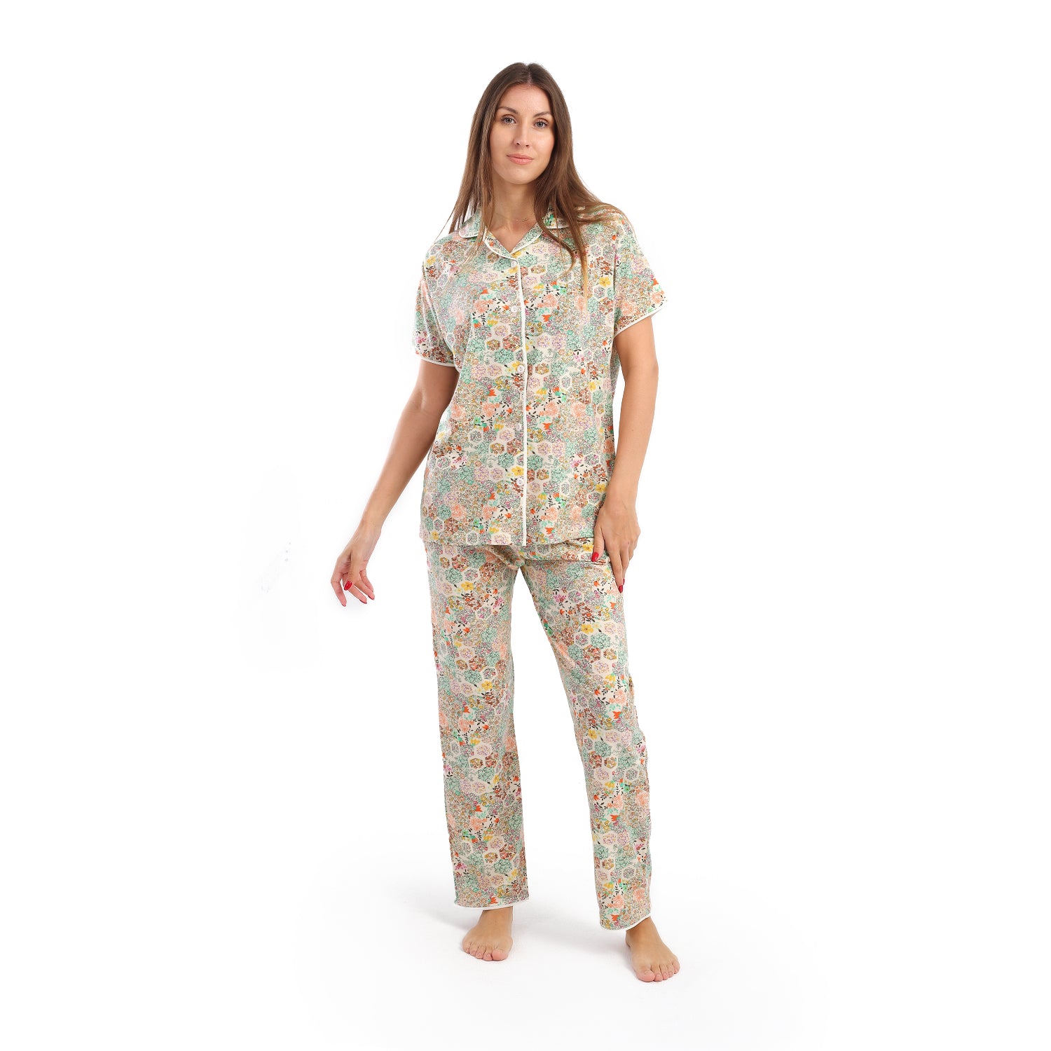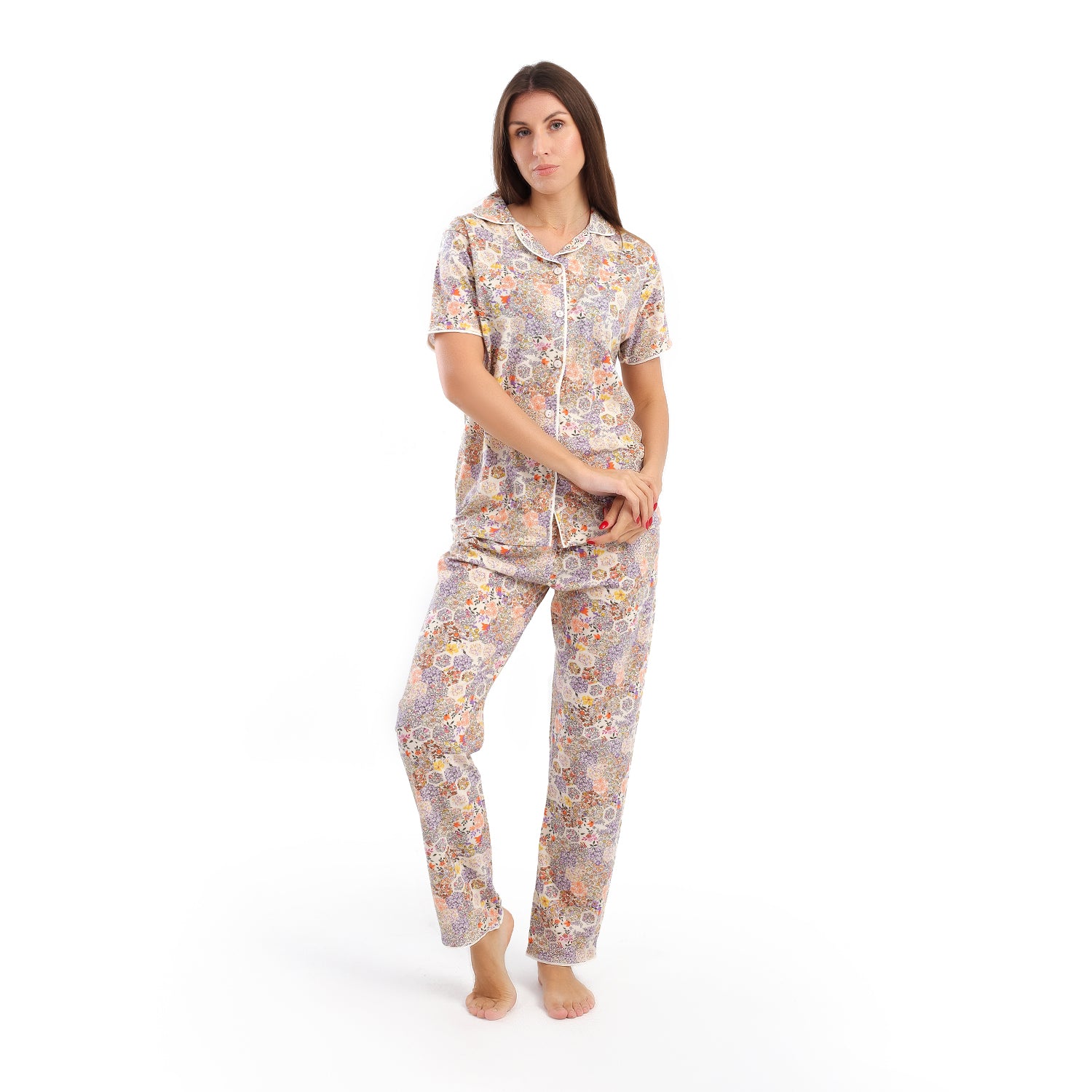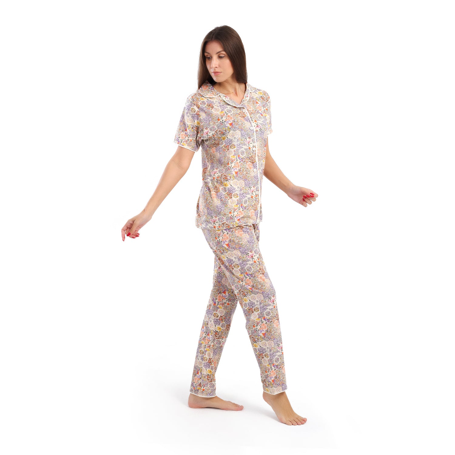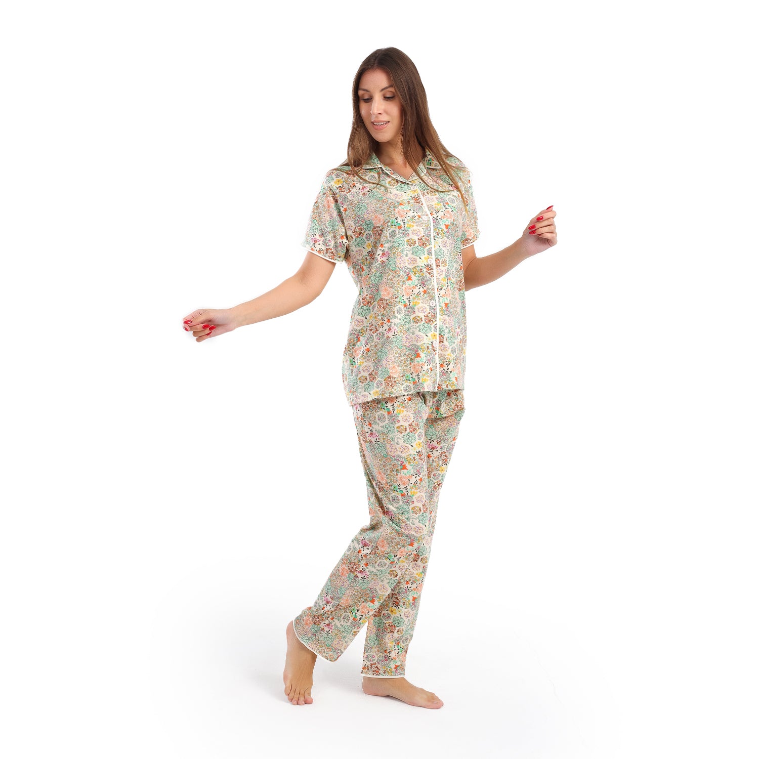 بجامة حريمي نصف كم كلاسيك مشجرة مريحة وعملية مصنوعة من أجود الأقطان المصرية