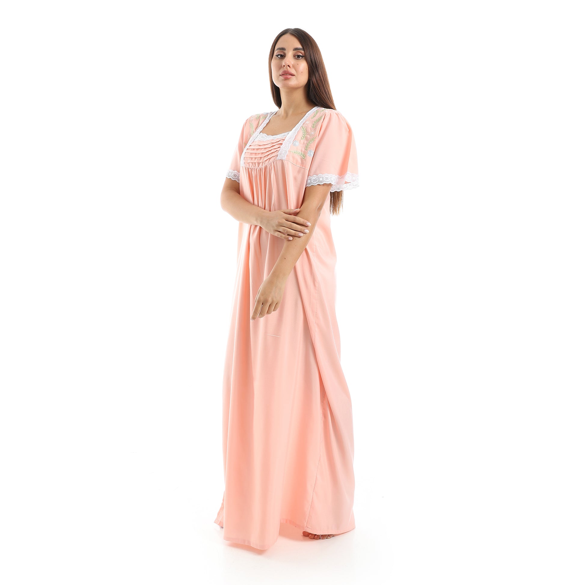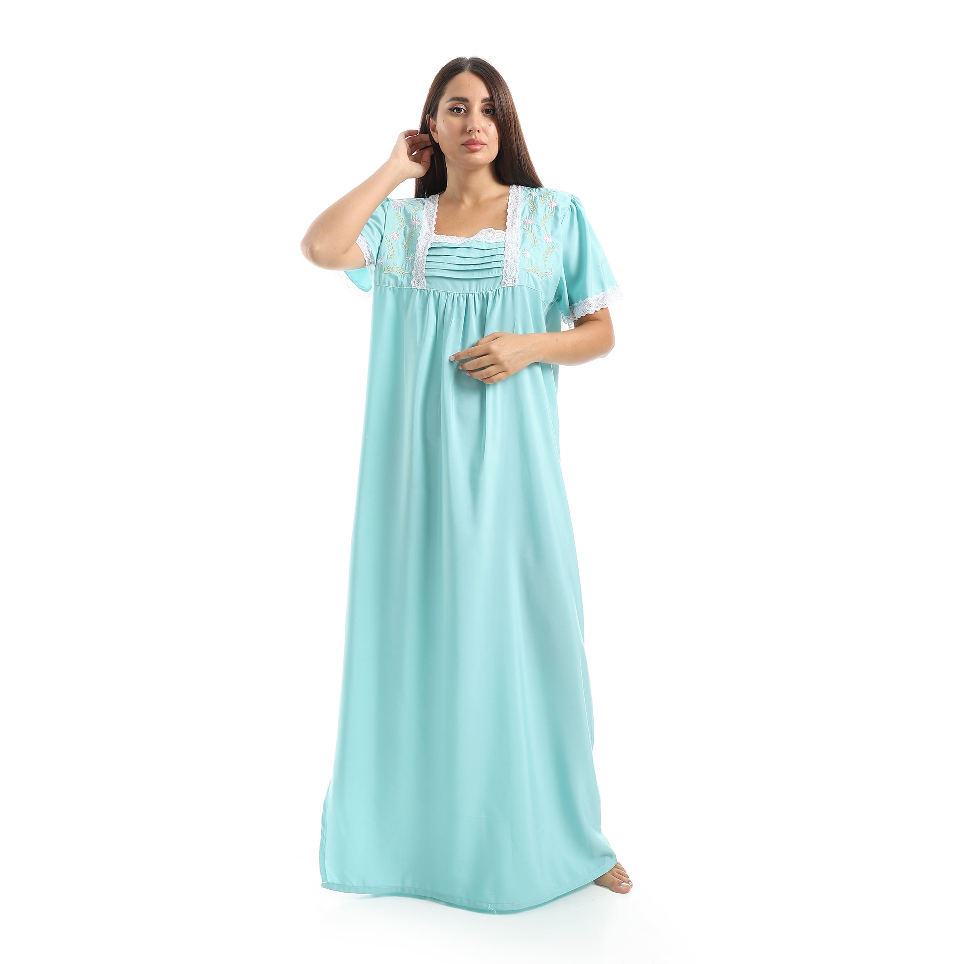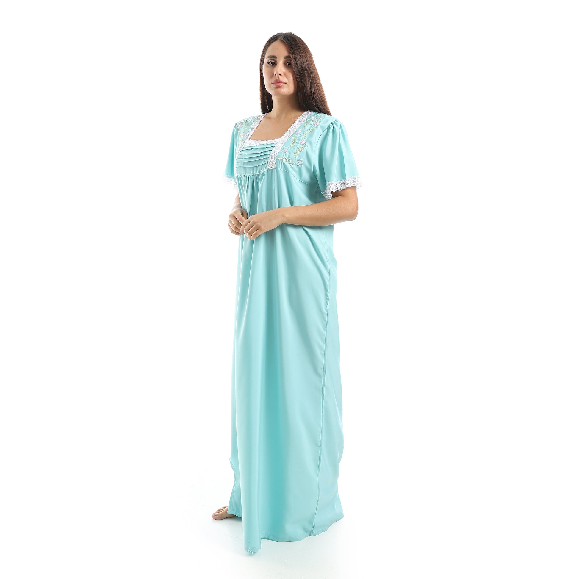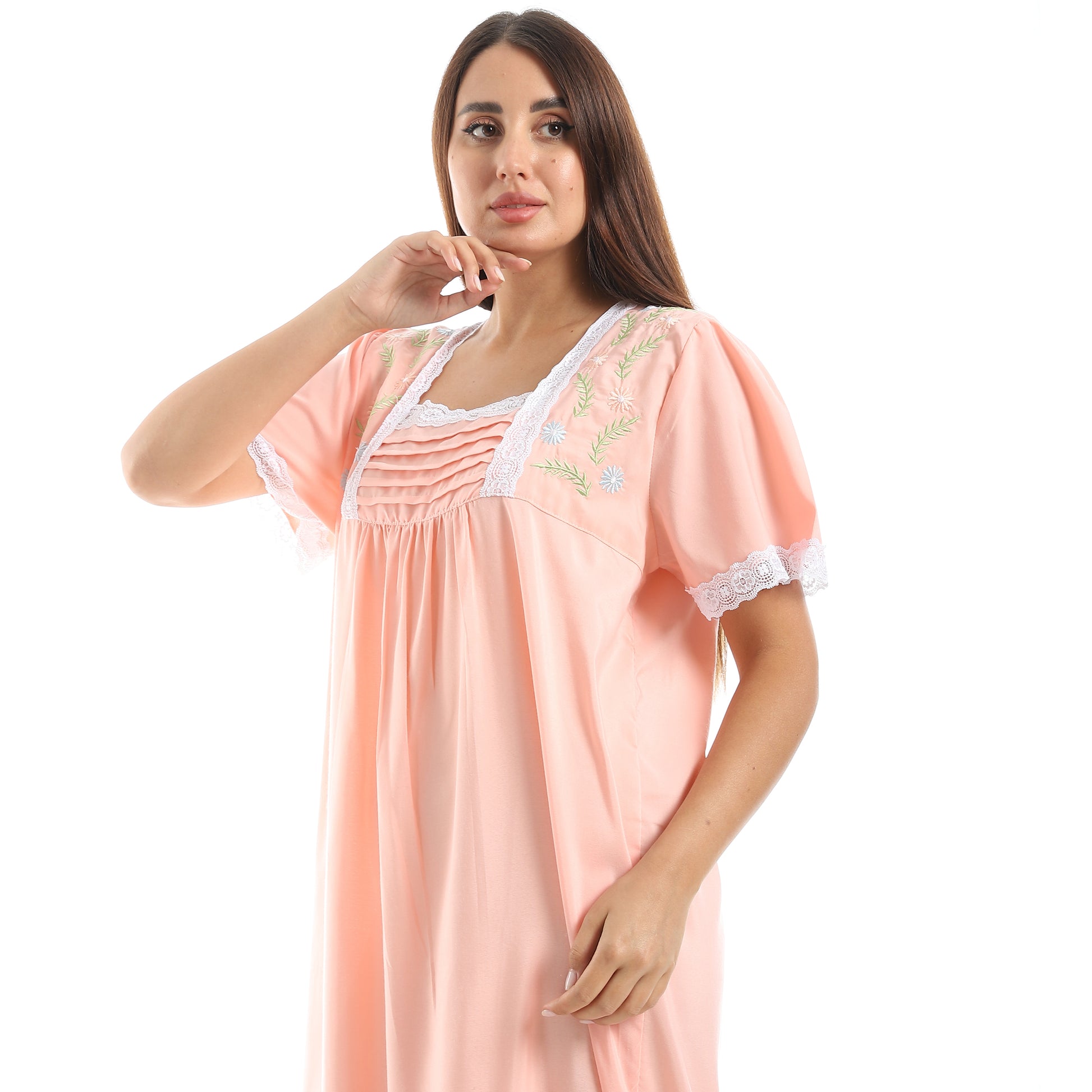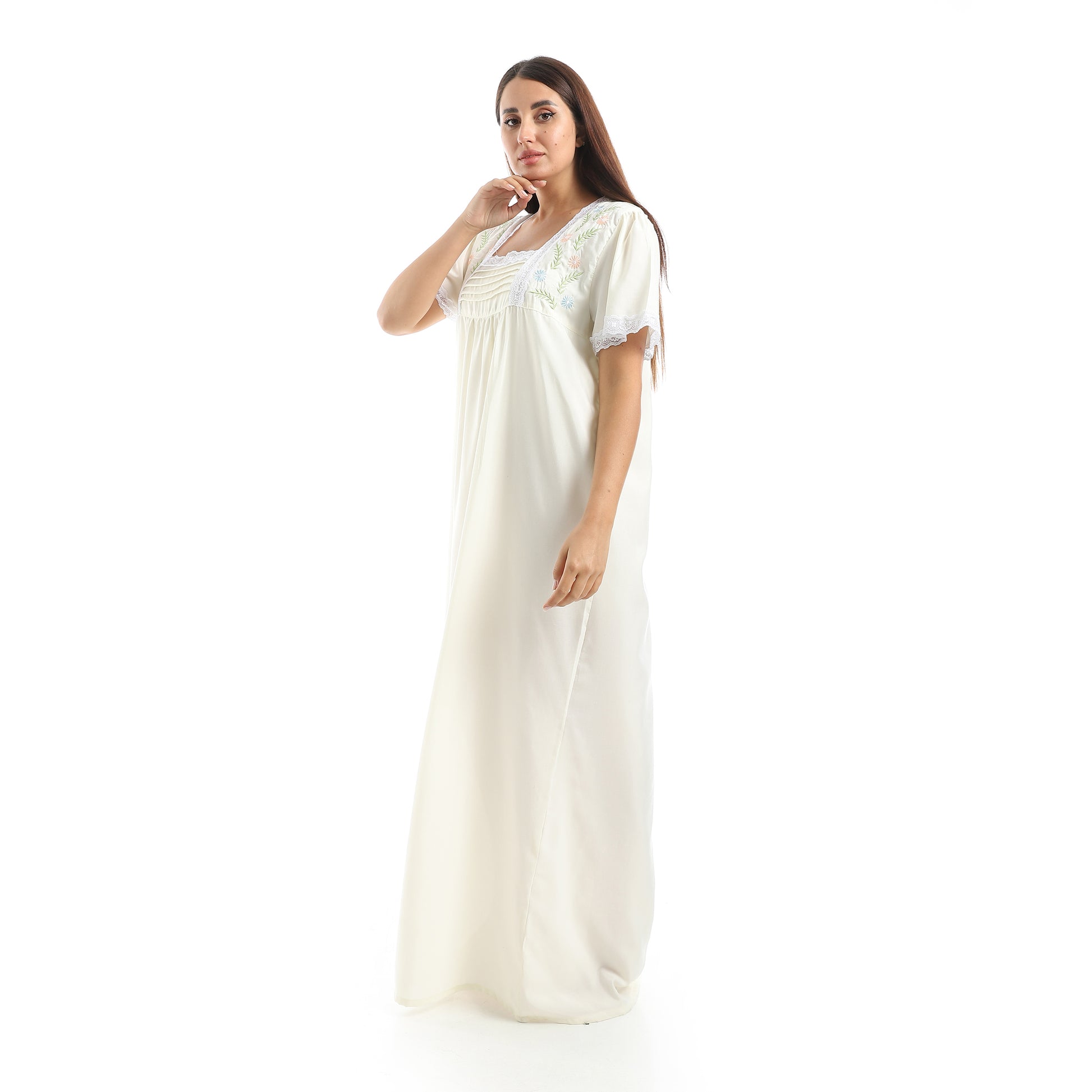 قميص نوم لينوه طويل بالتطريز والدانتيل