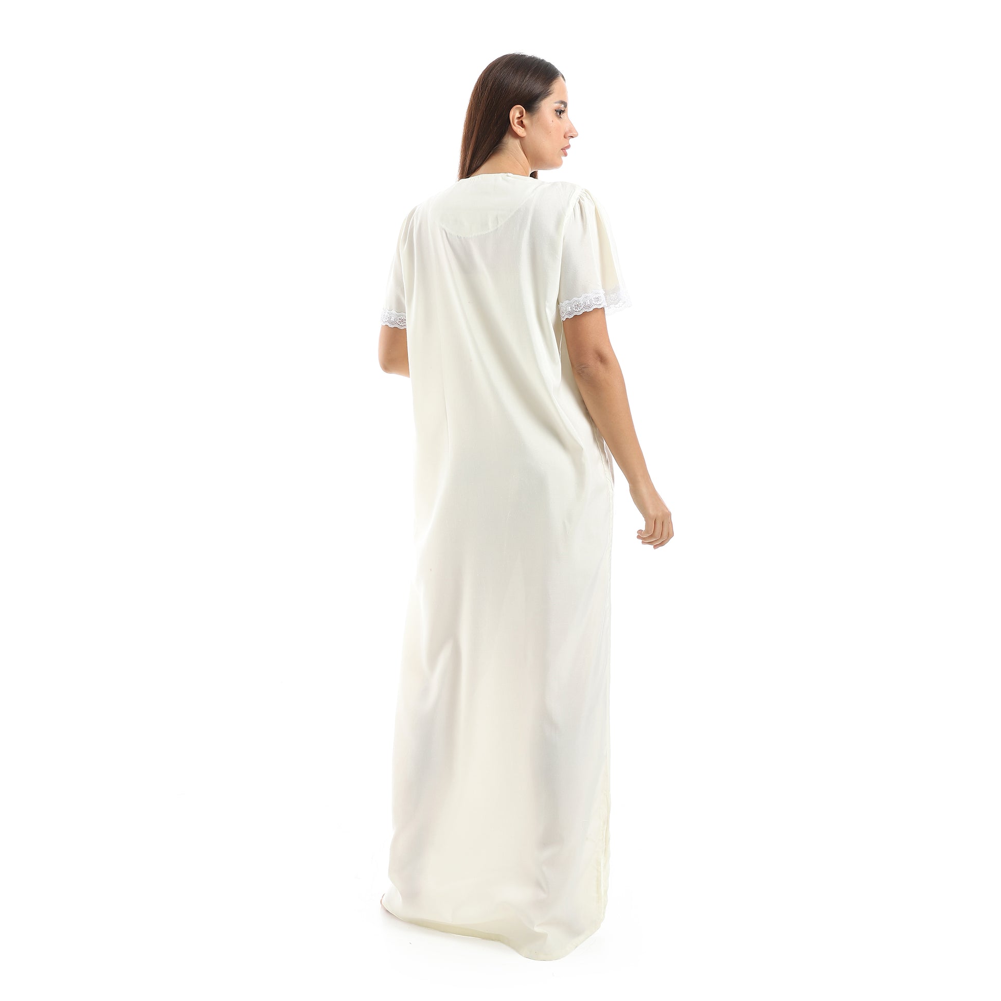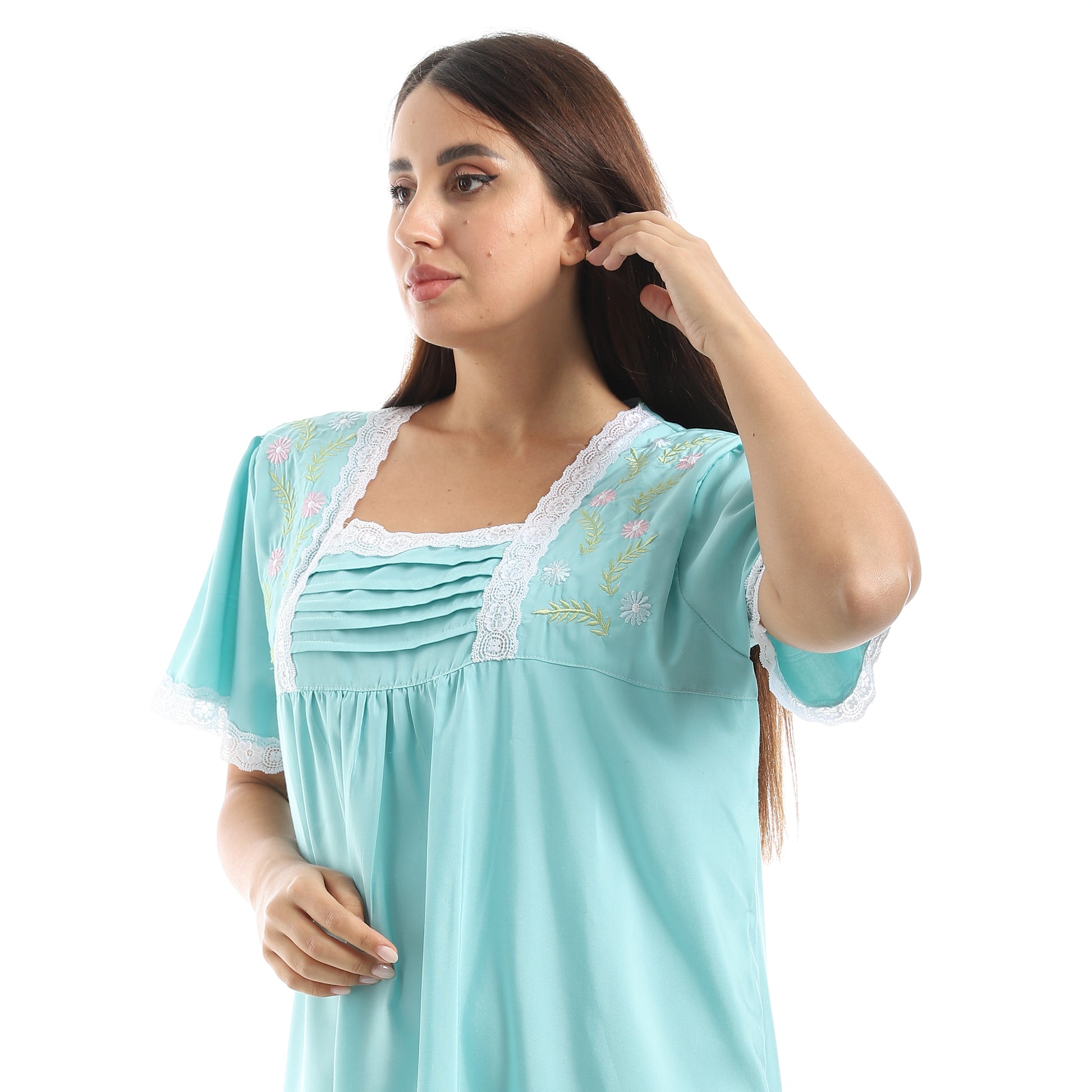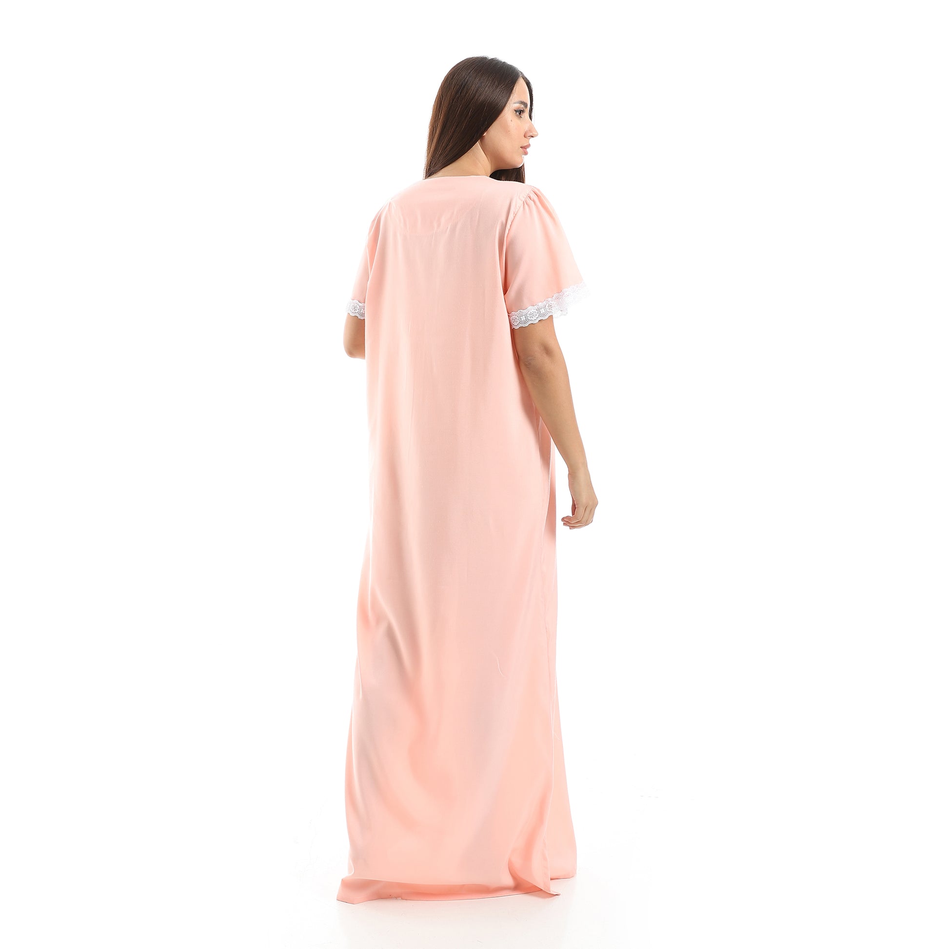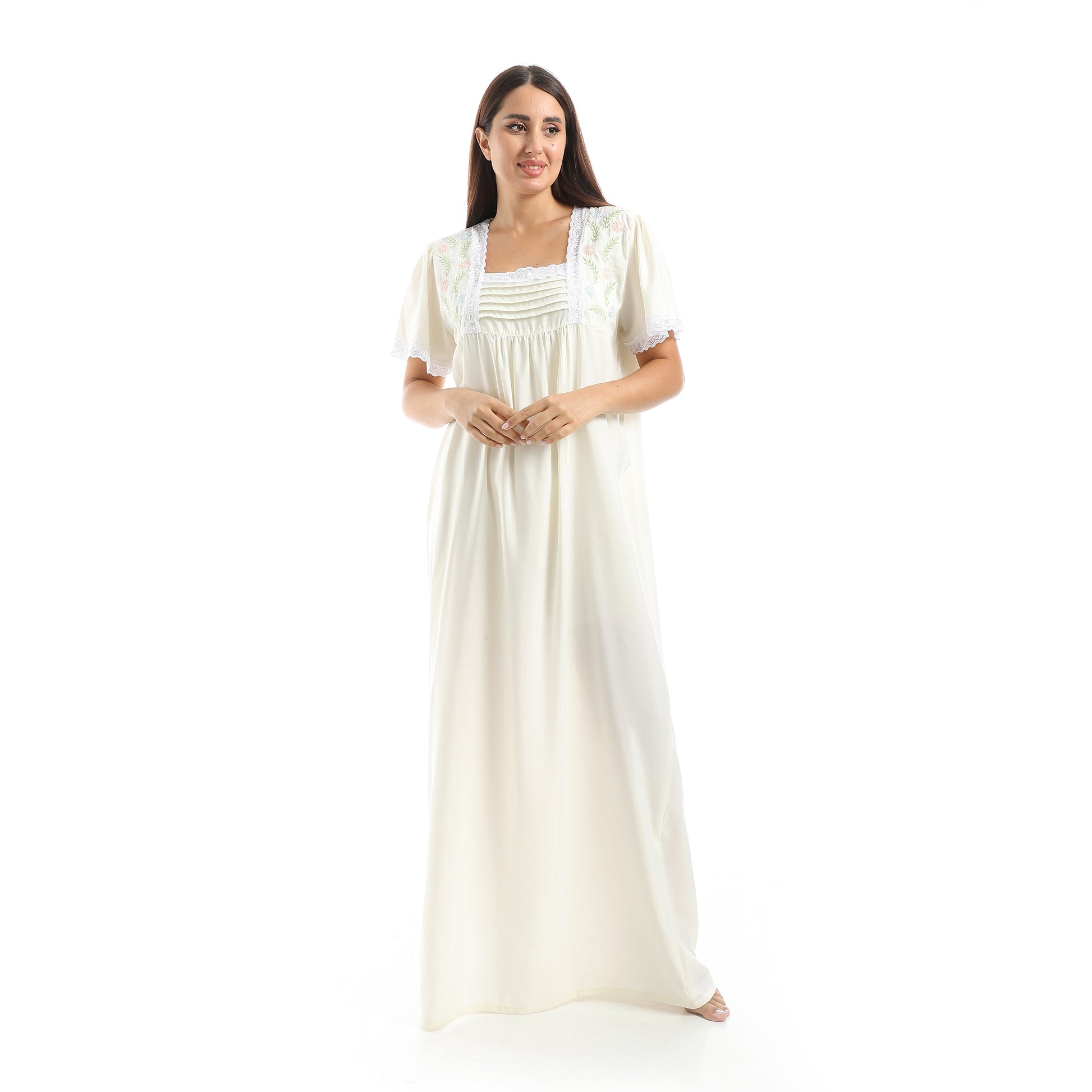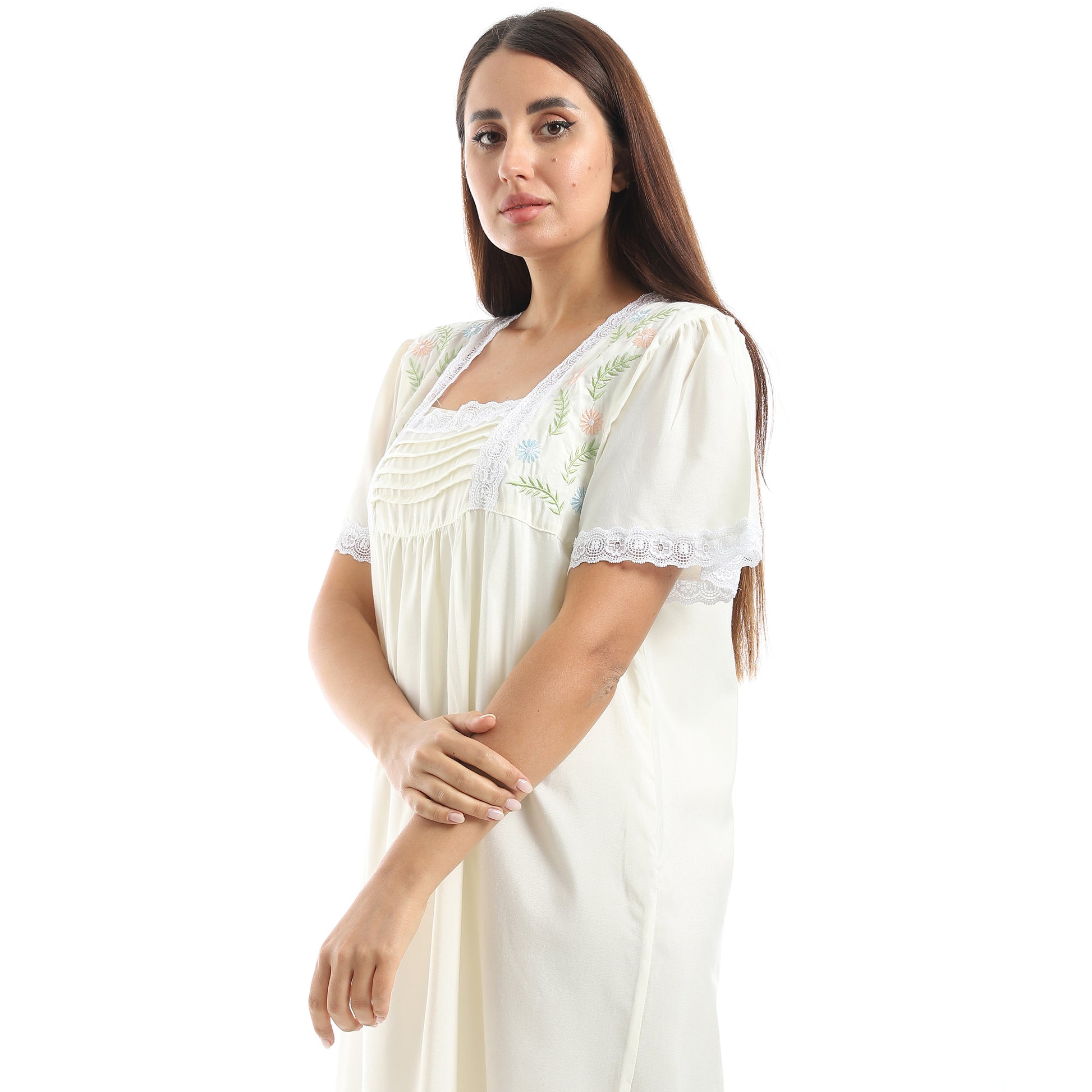 قميص نوم لينوه طويل بالتطريز والدانتيل