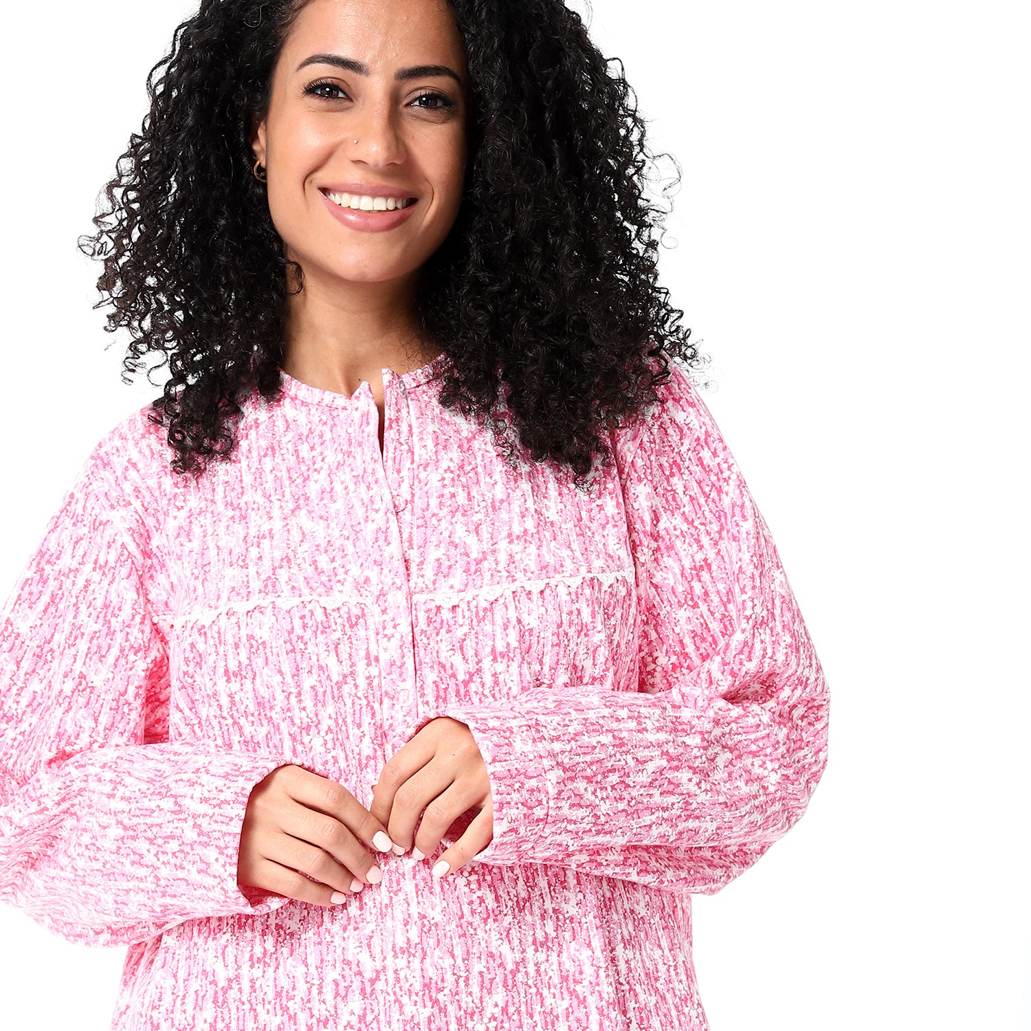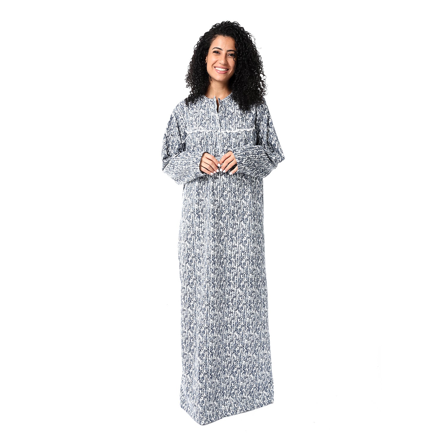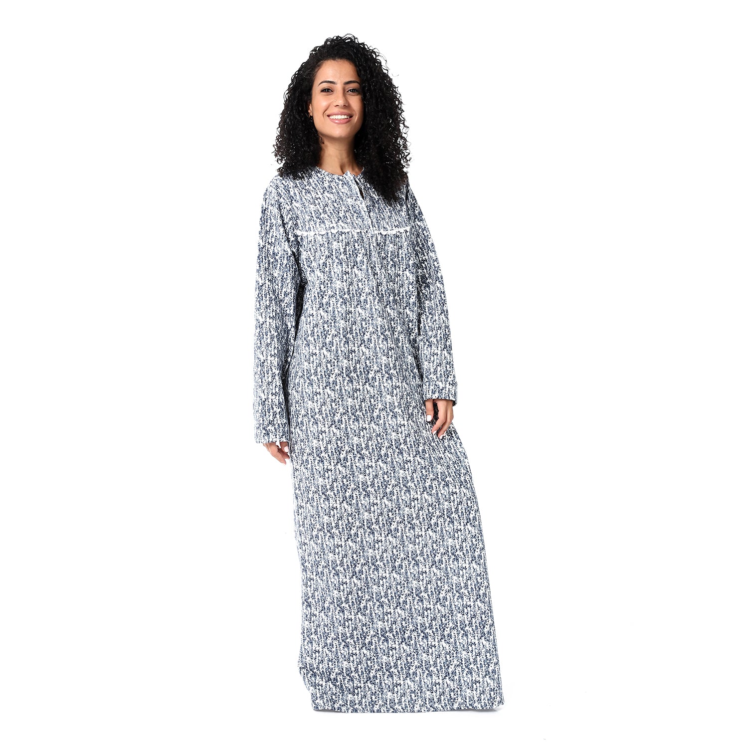 قميص نوم شتوي مشجر كم طويل ميلتون قطن بالدانتيل