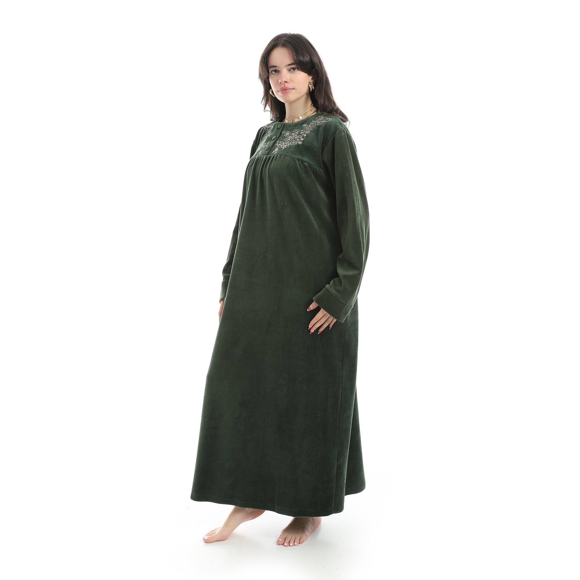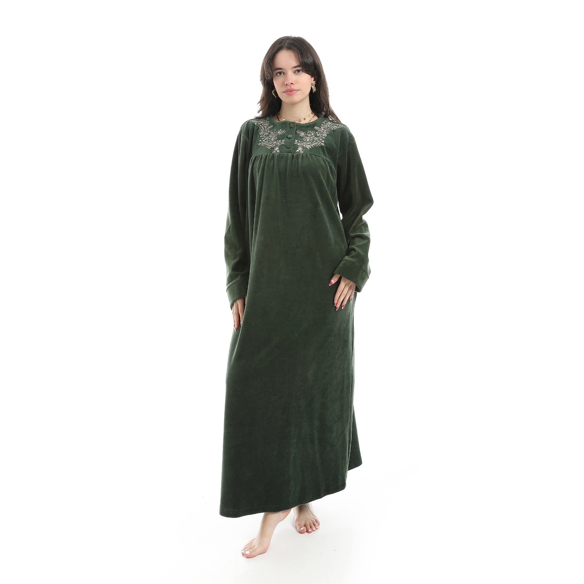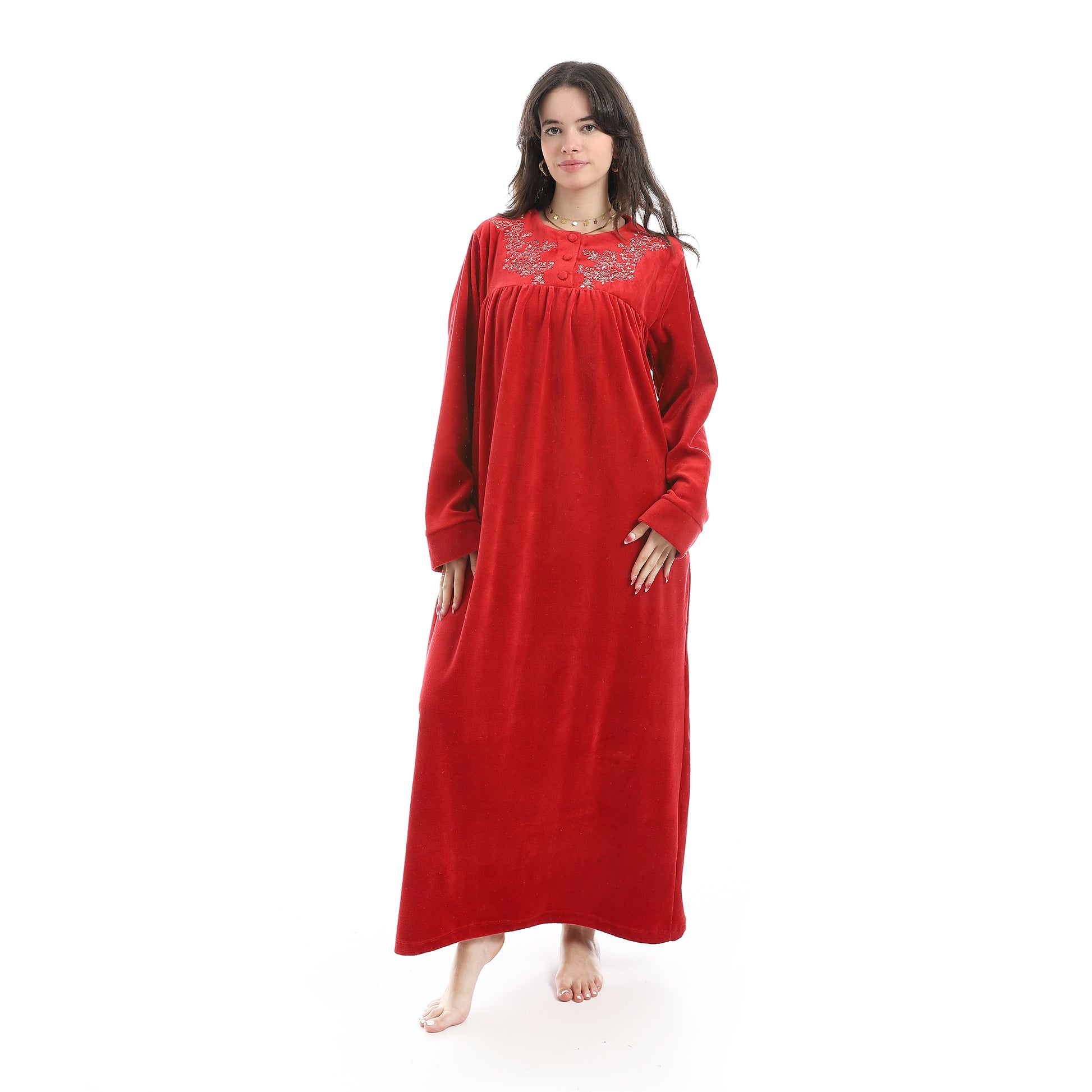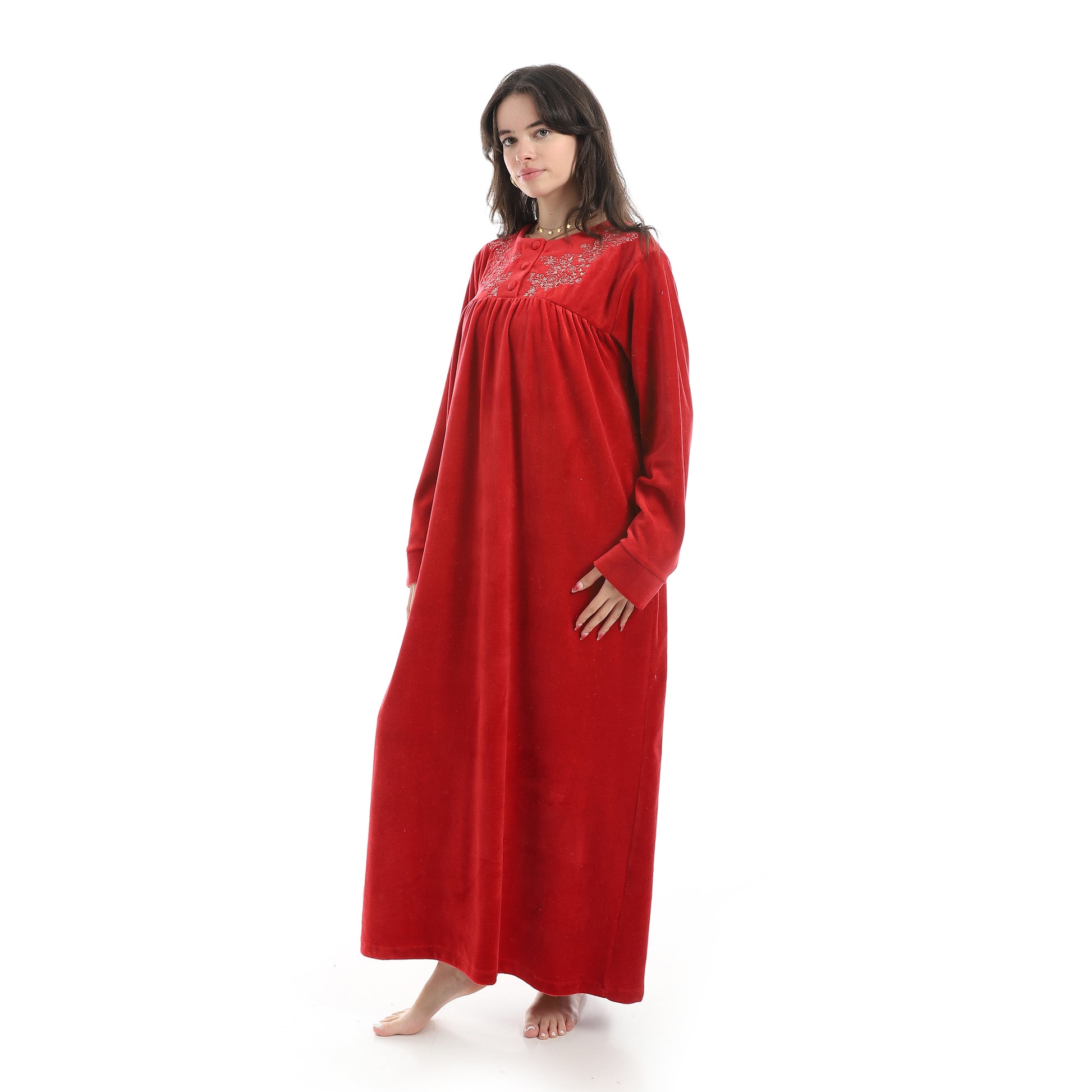قميص نوم شتوي قطيفة بسفرة مطرز