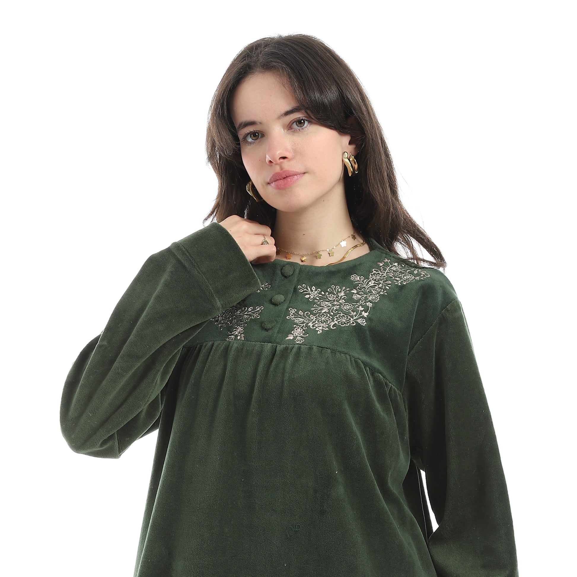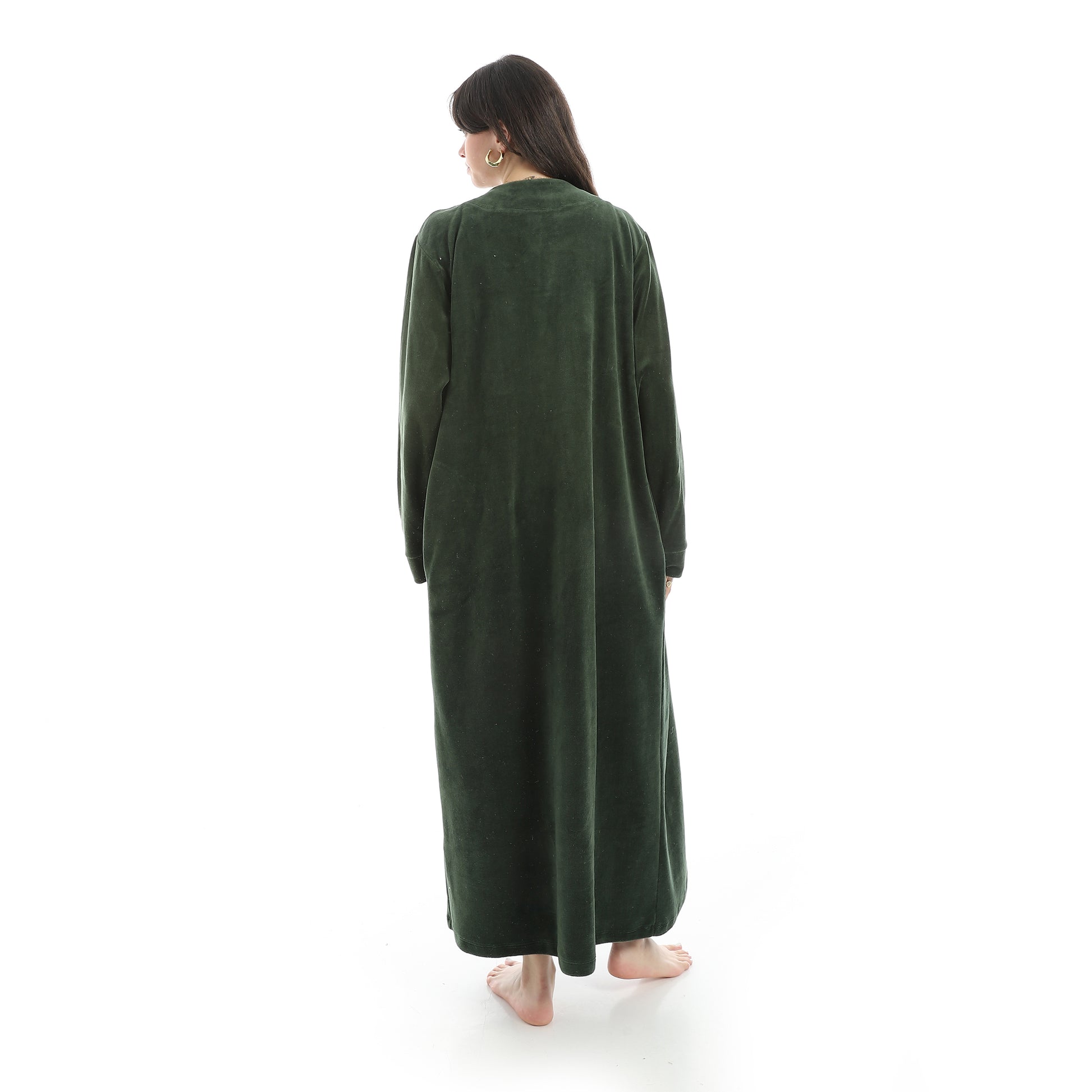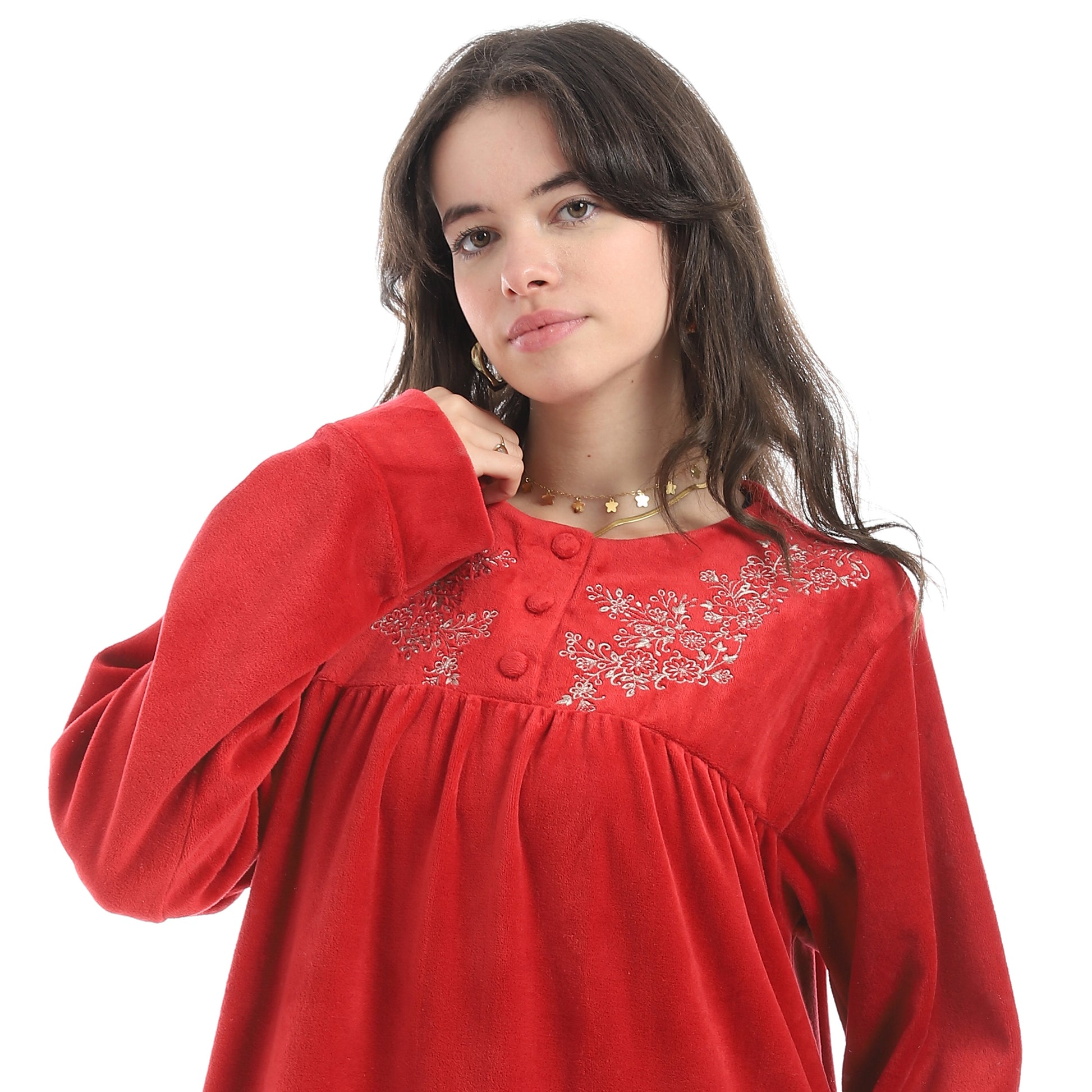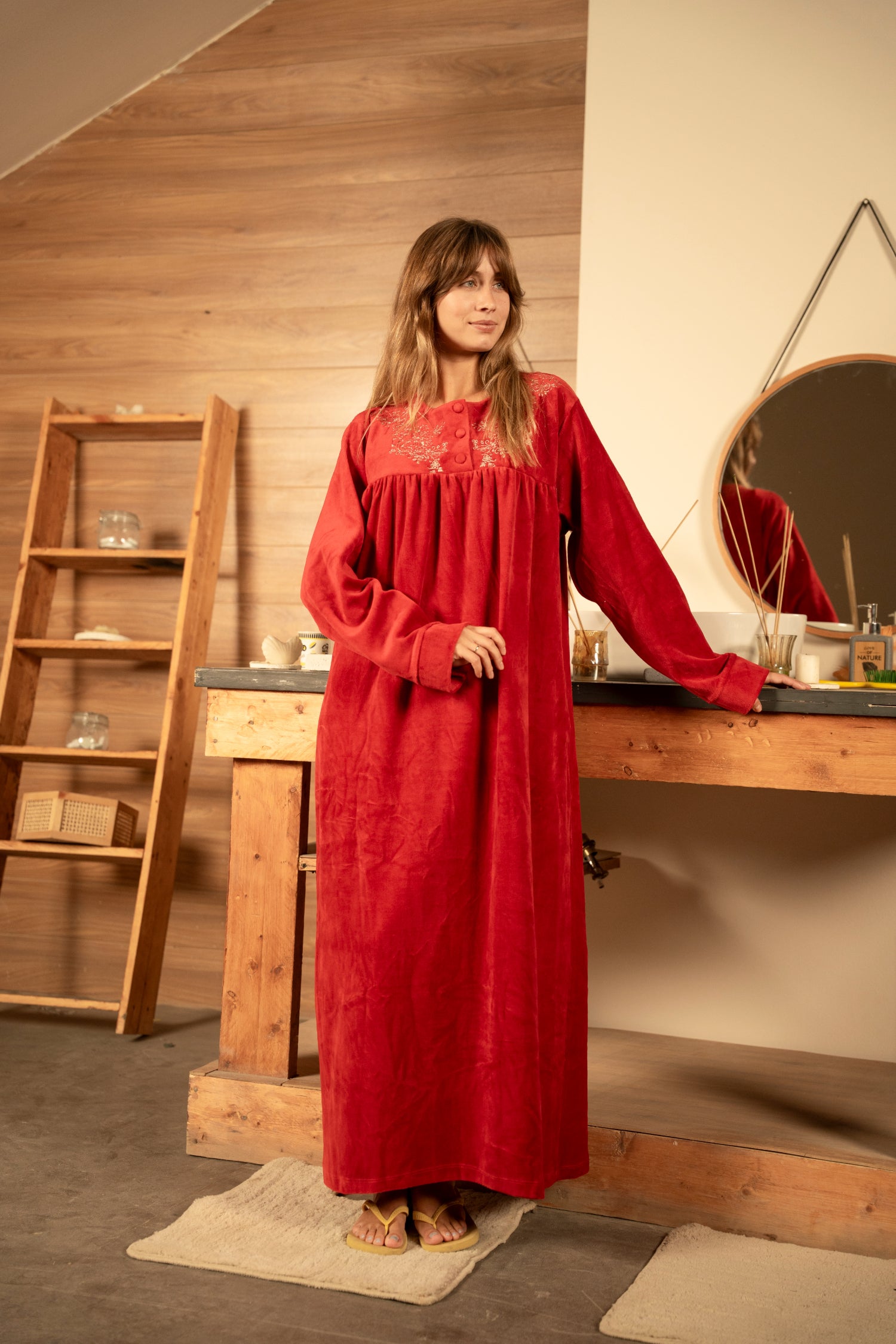 قميص نوم شتوي قطيفة بسفرة مطرز