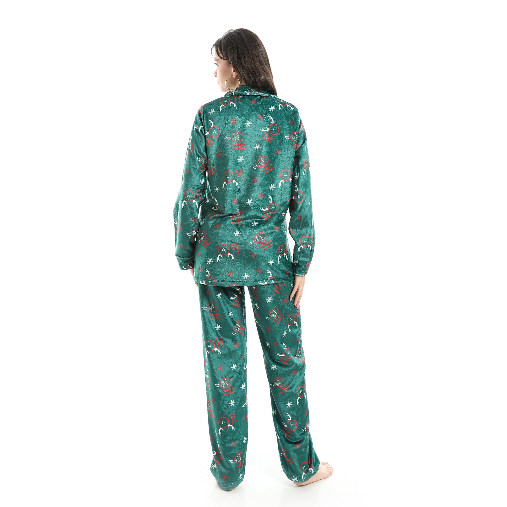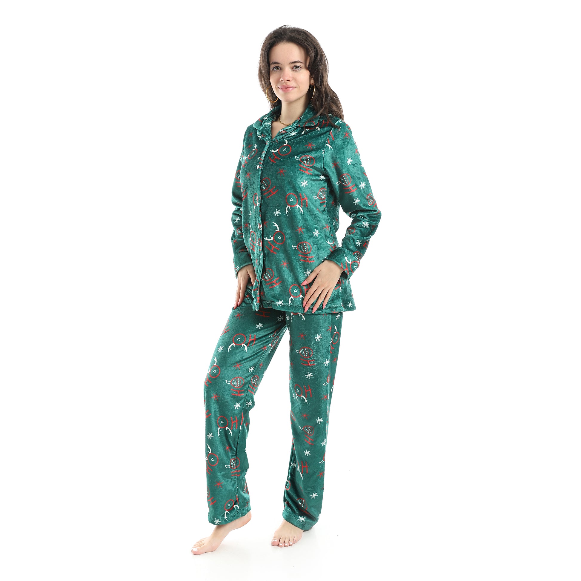 بجامة حريمي شتوي بولار مطبوعة بزراير