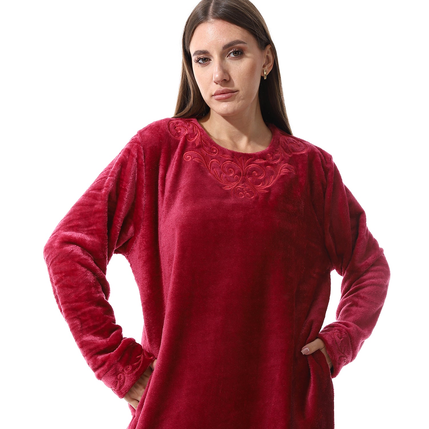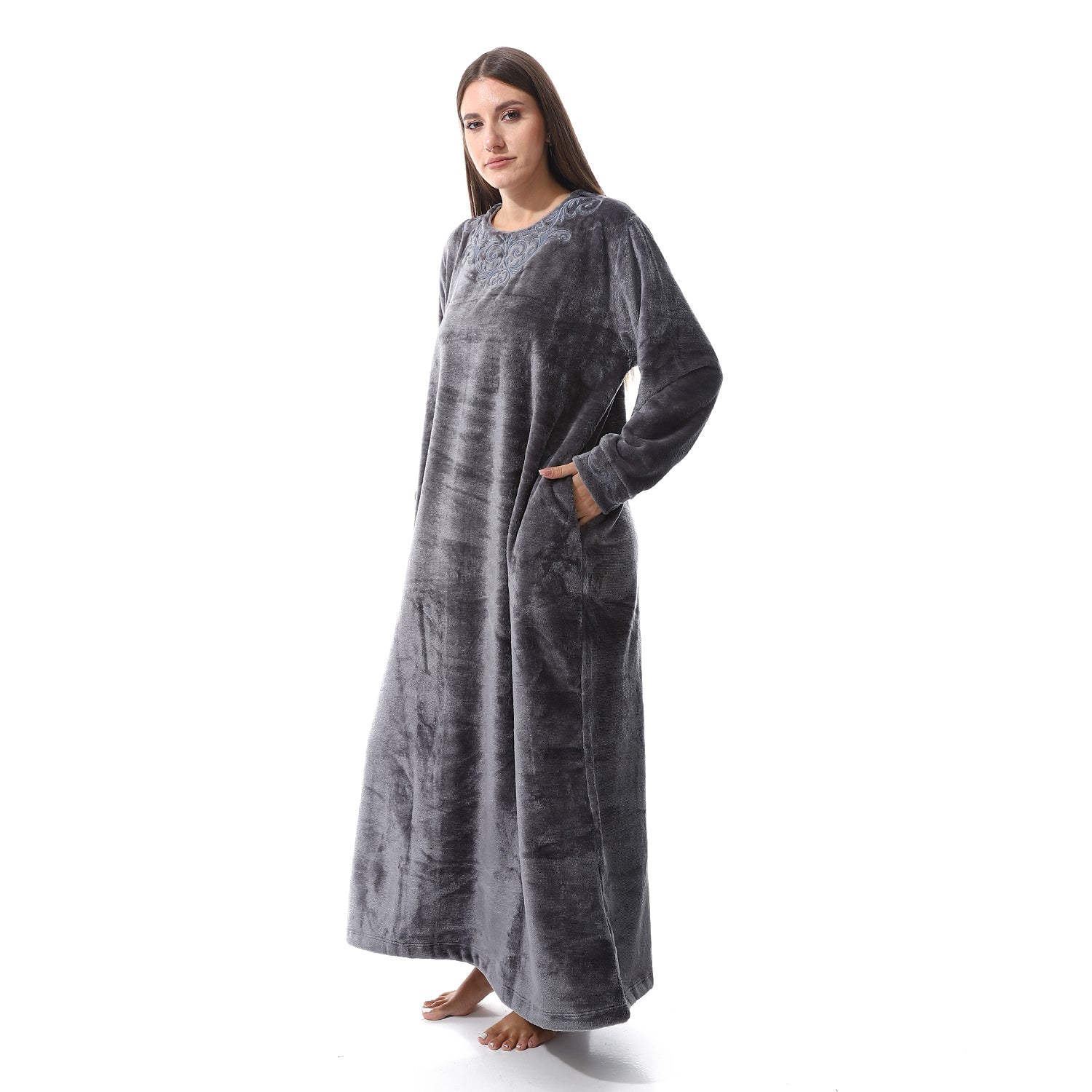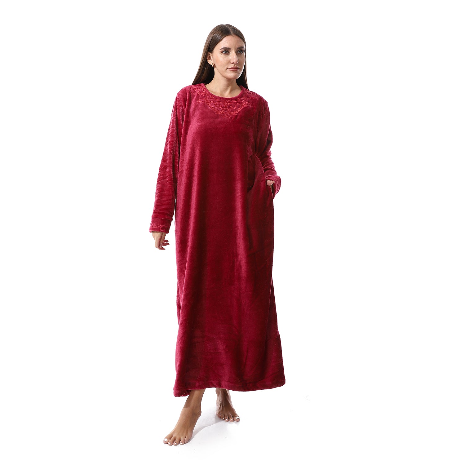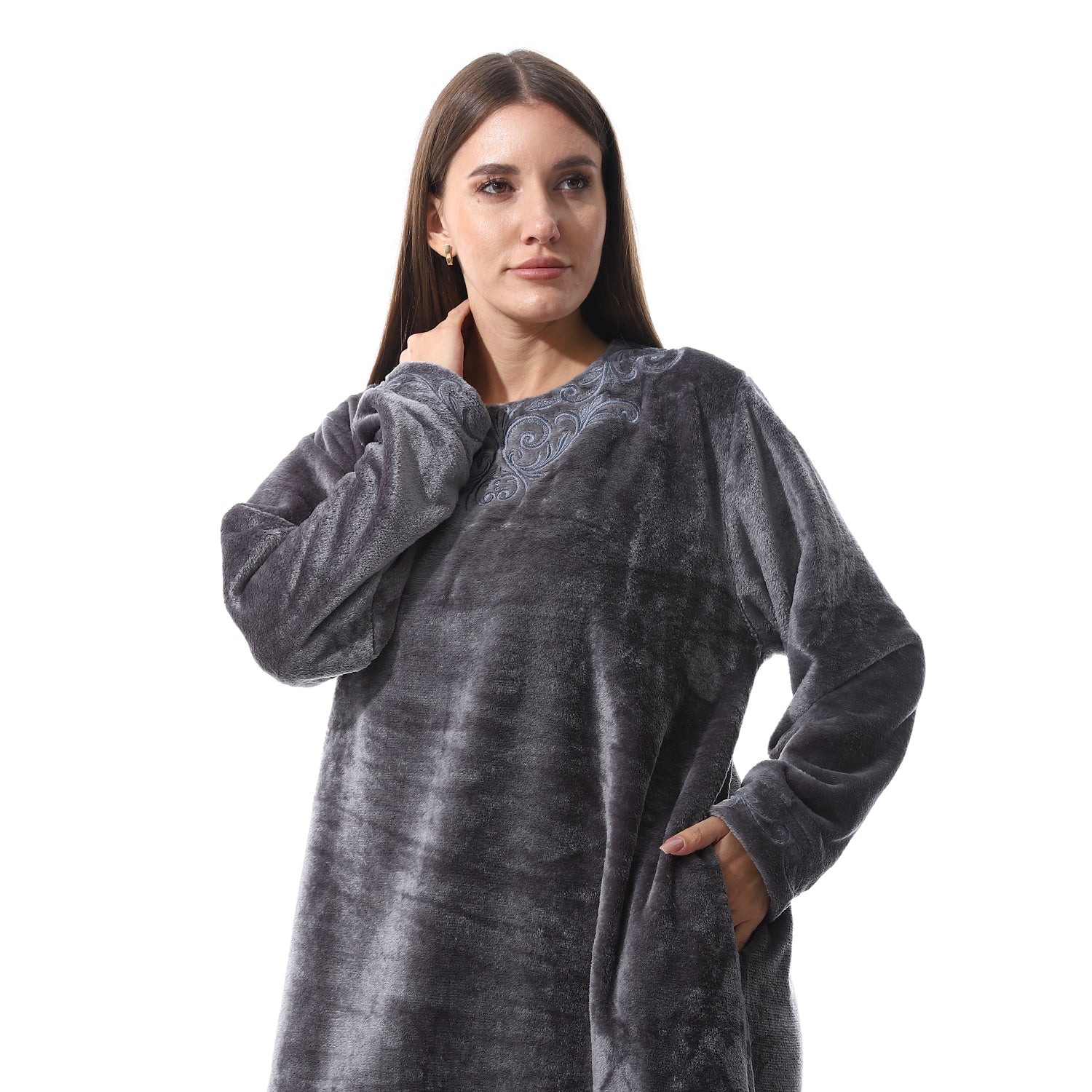 قميص نوم شتوي بولار مطرز