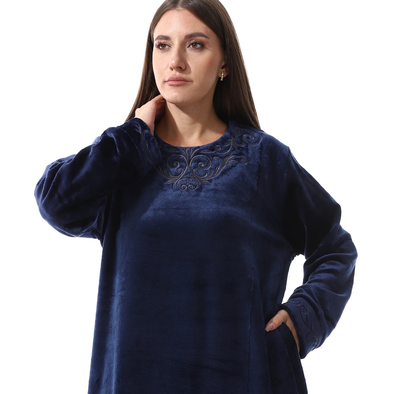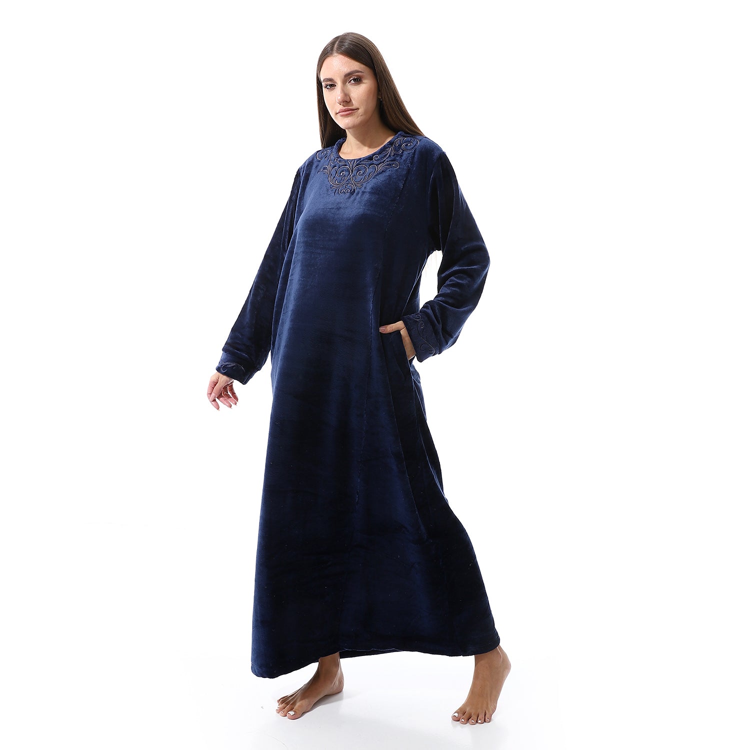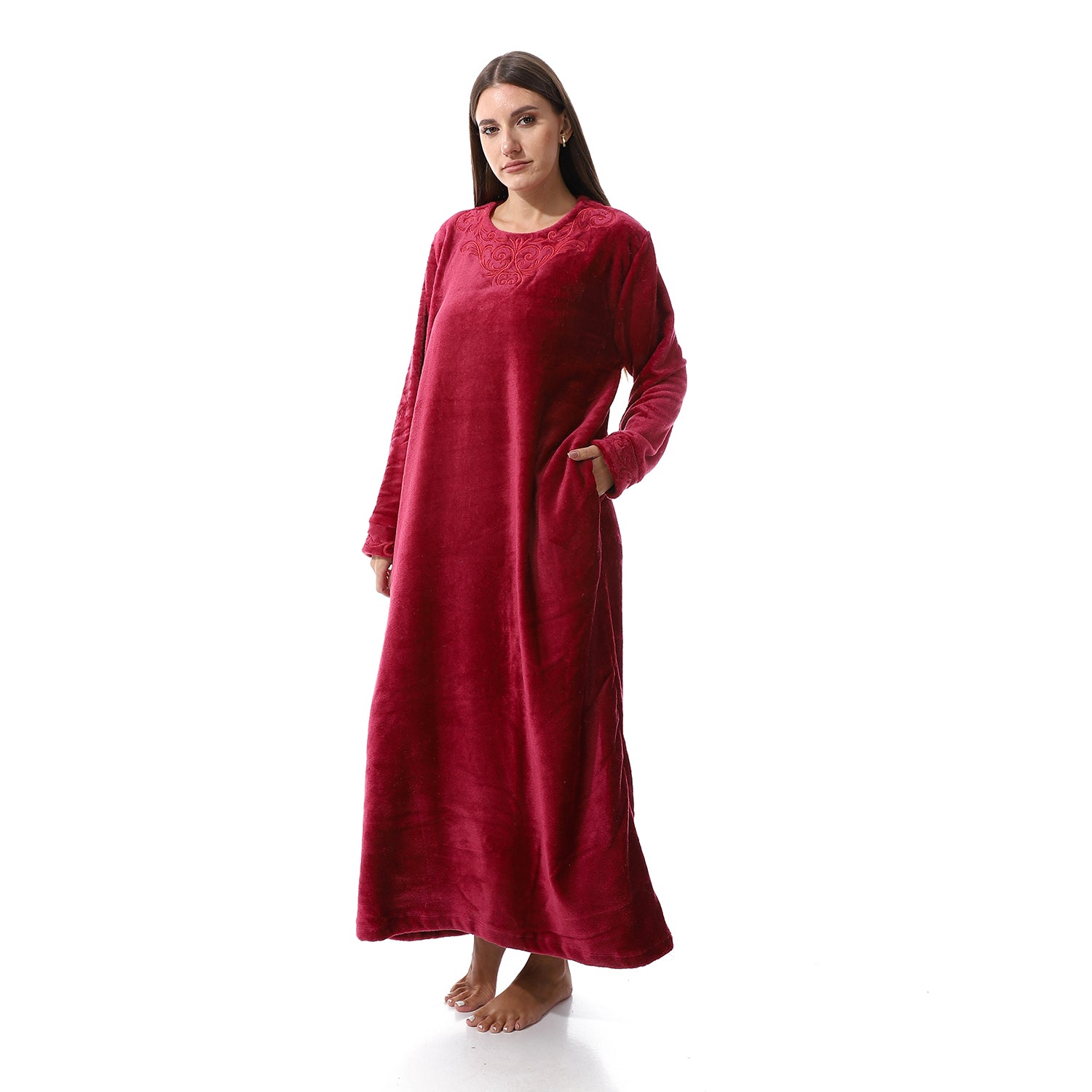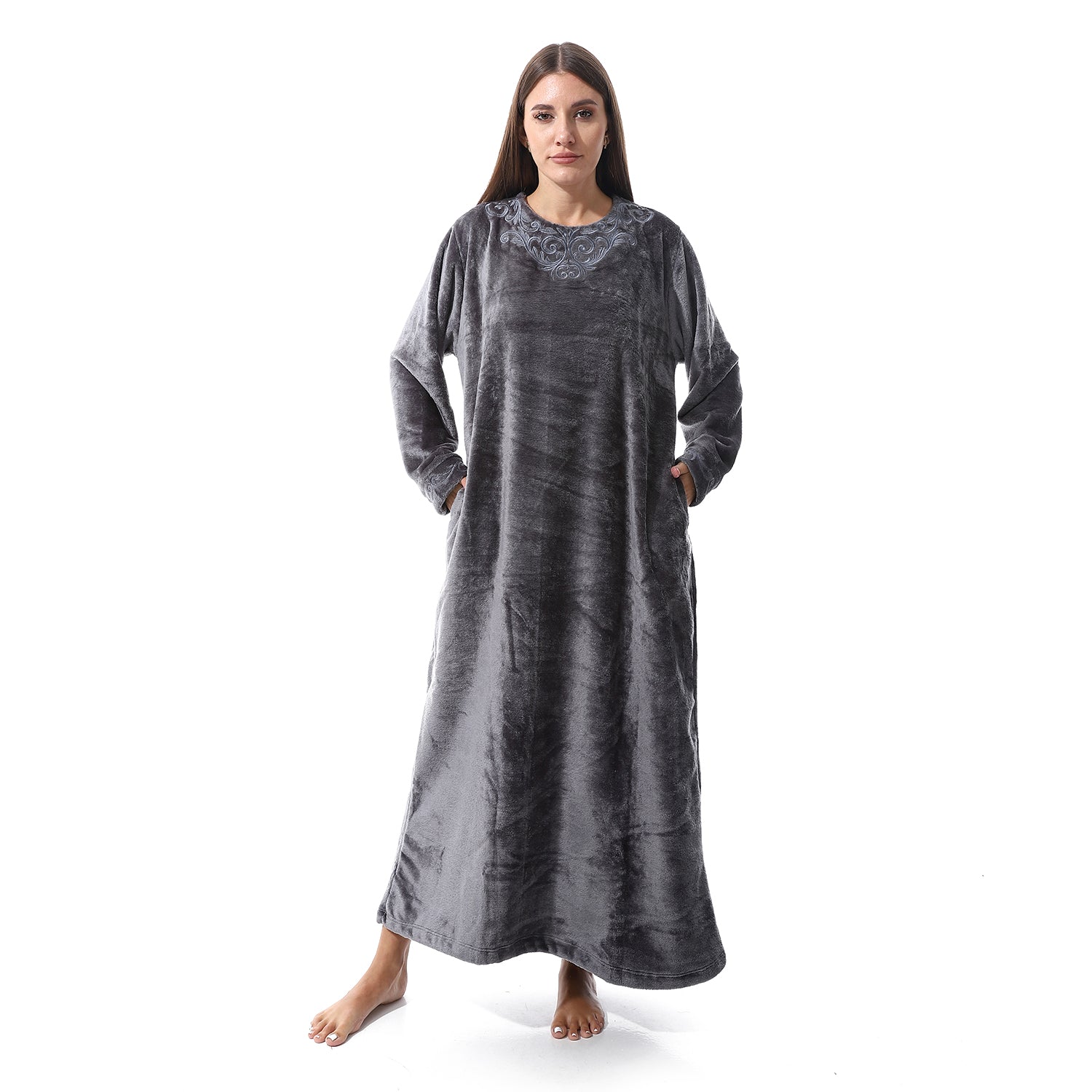 قميص نوم شتوي بولار مطرز