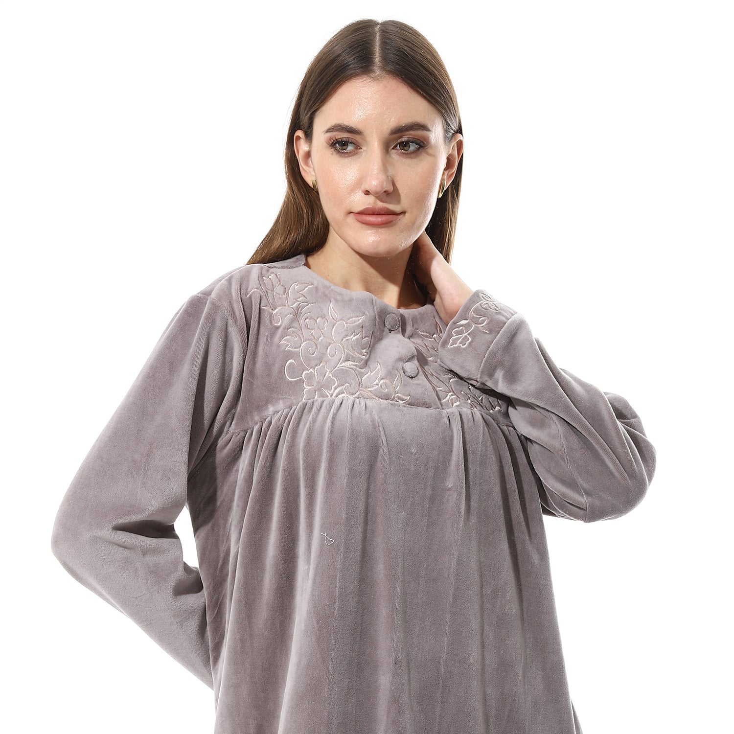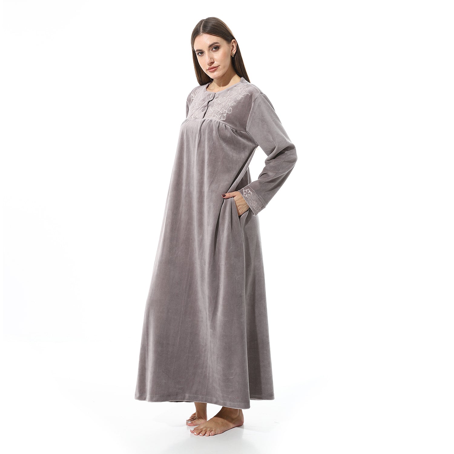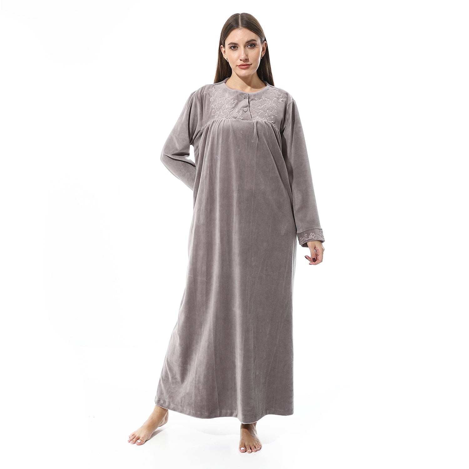 قميص نوم شتوي قطيفة مطرز