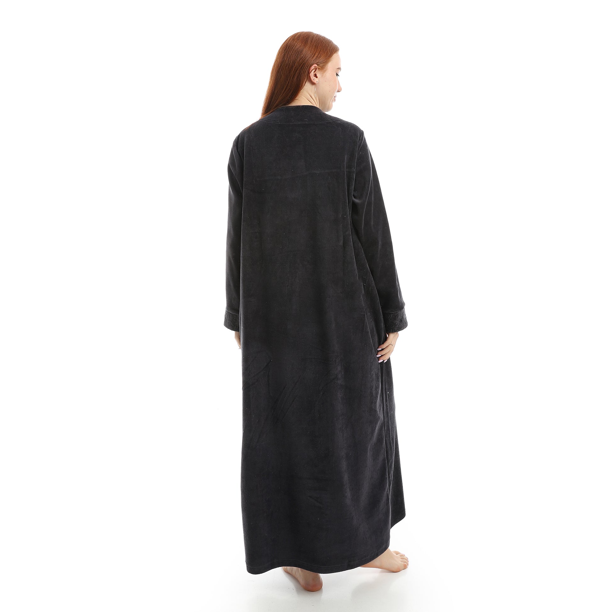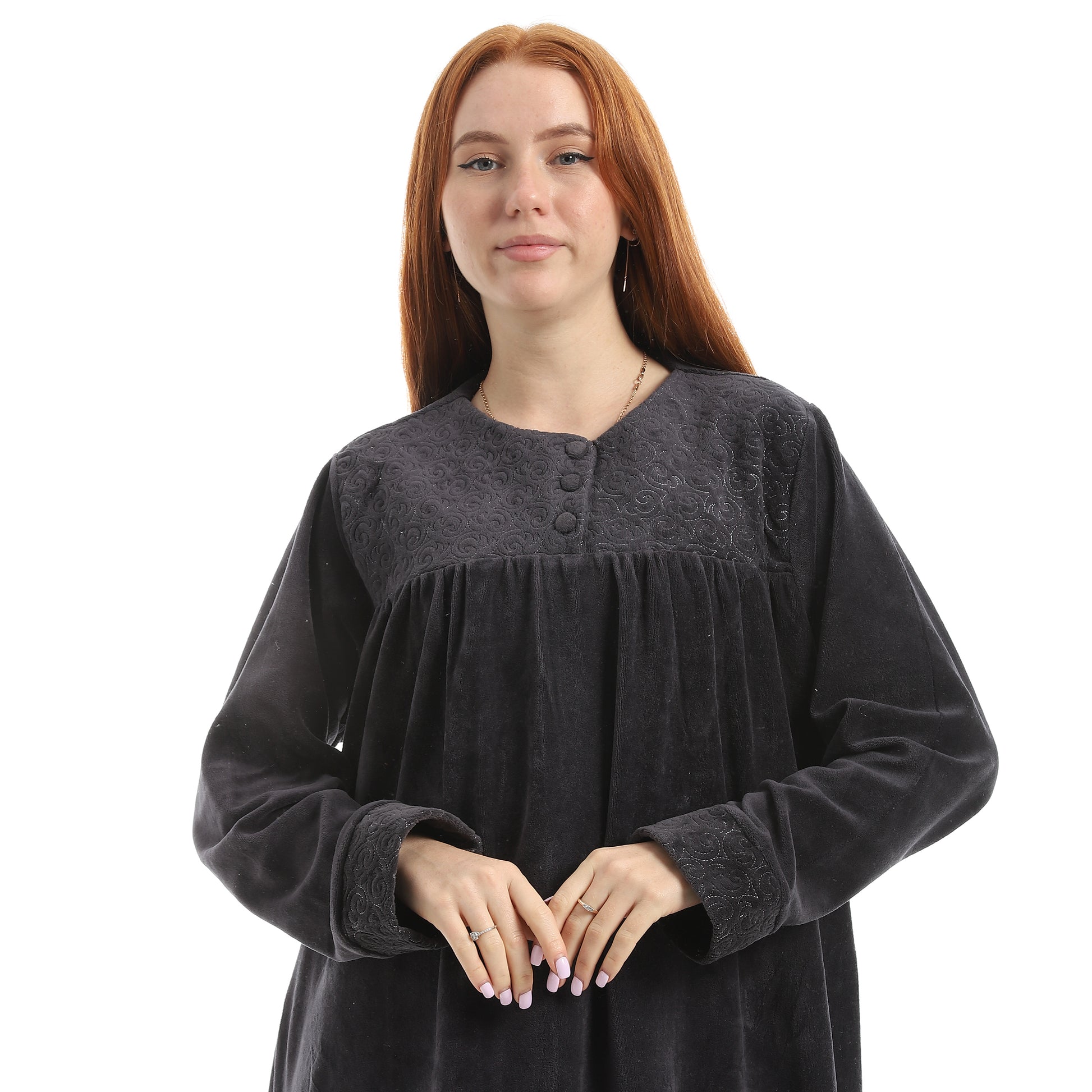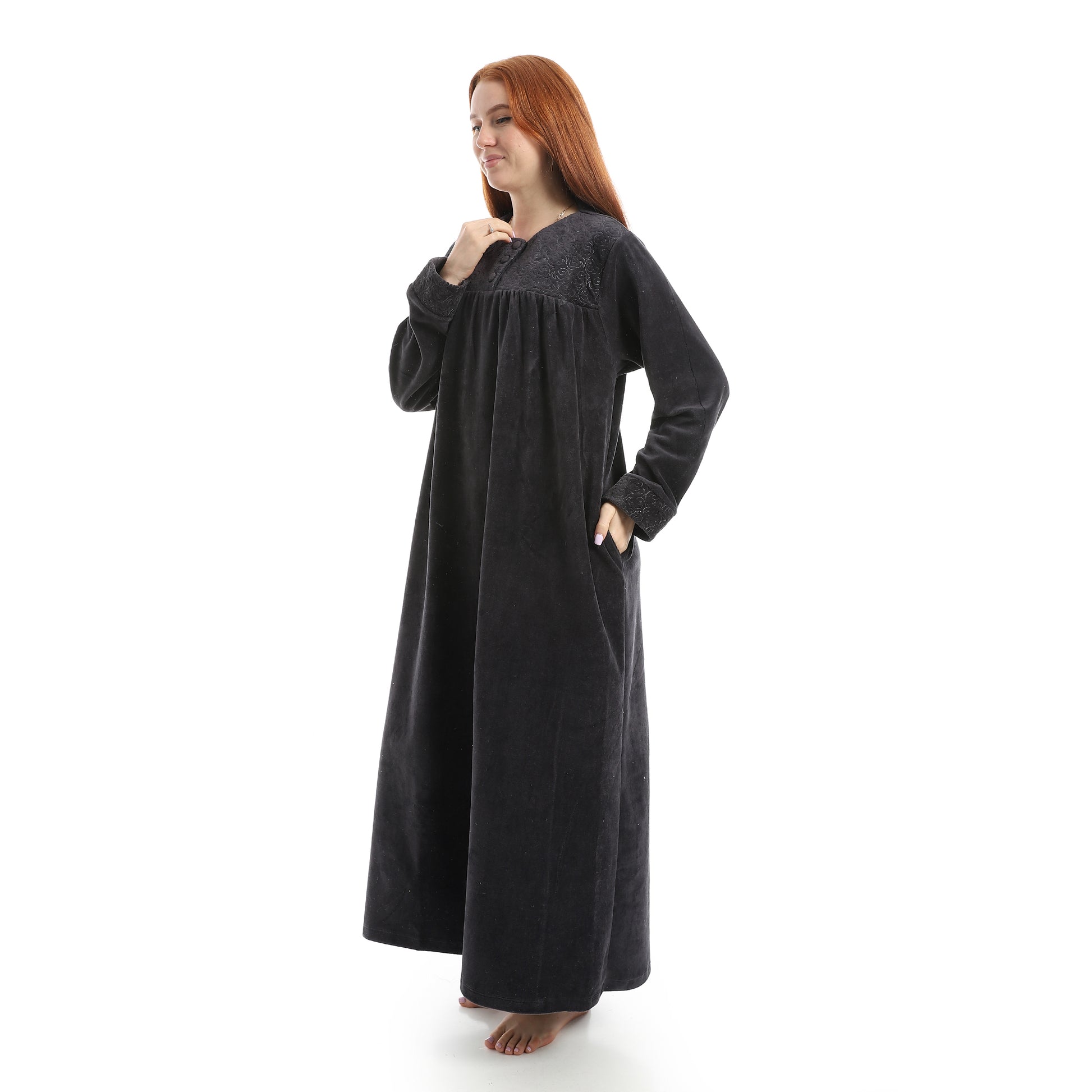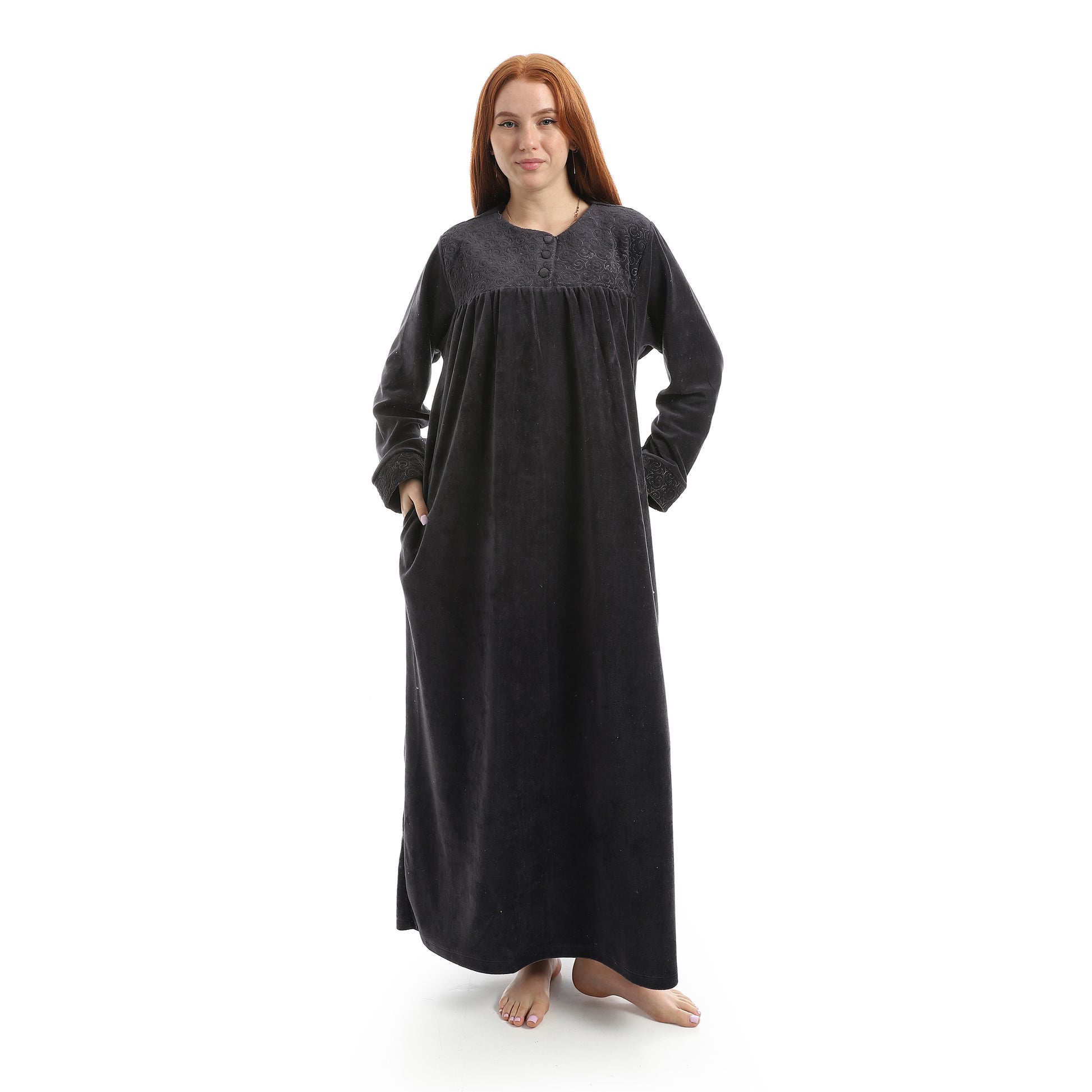 قميص نوم شتوي قطيفة بسفرة مطرز