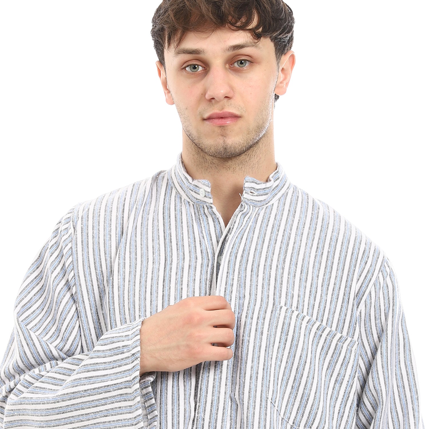 جلابية رجالي كم طويل كستور شتوي بياقة مقلمة الوان