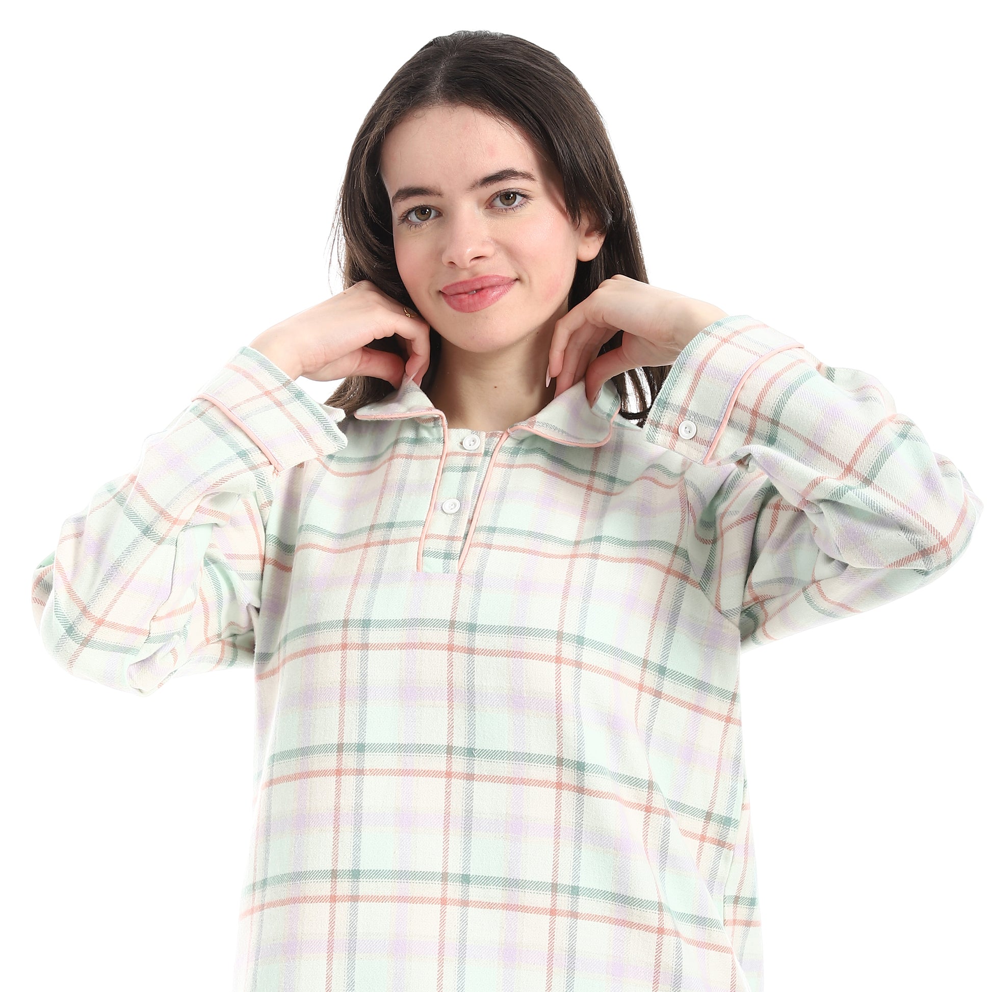 قميص نوم شتوي صوف فيلا قطن صافي بياقة