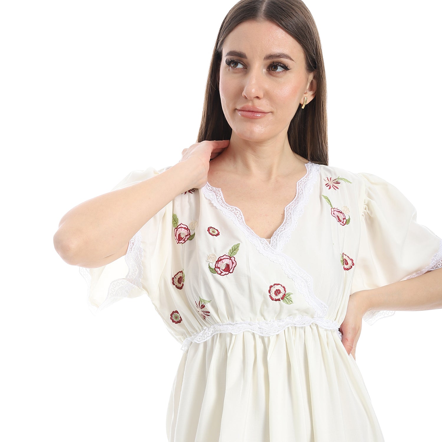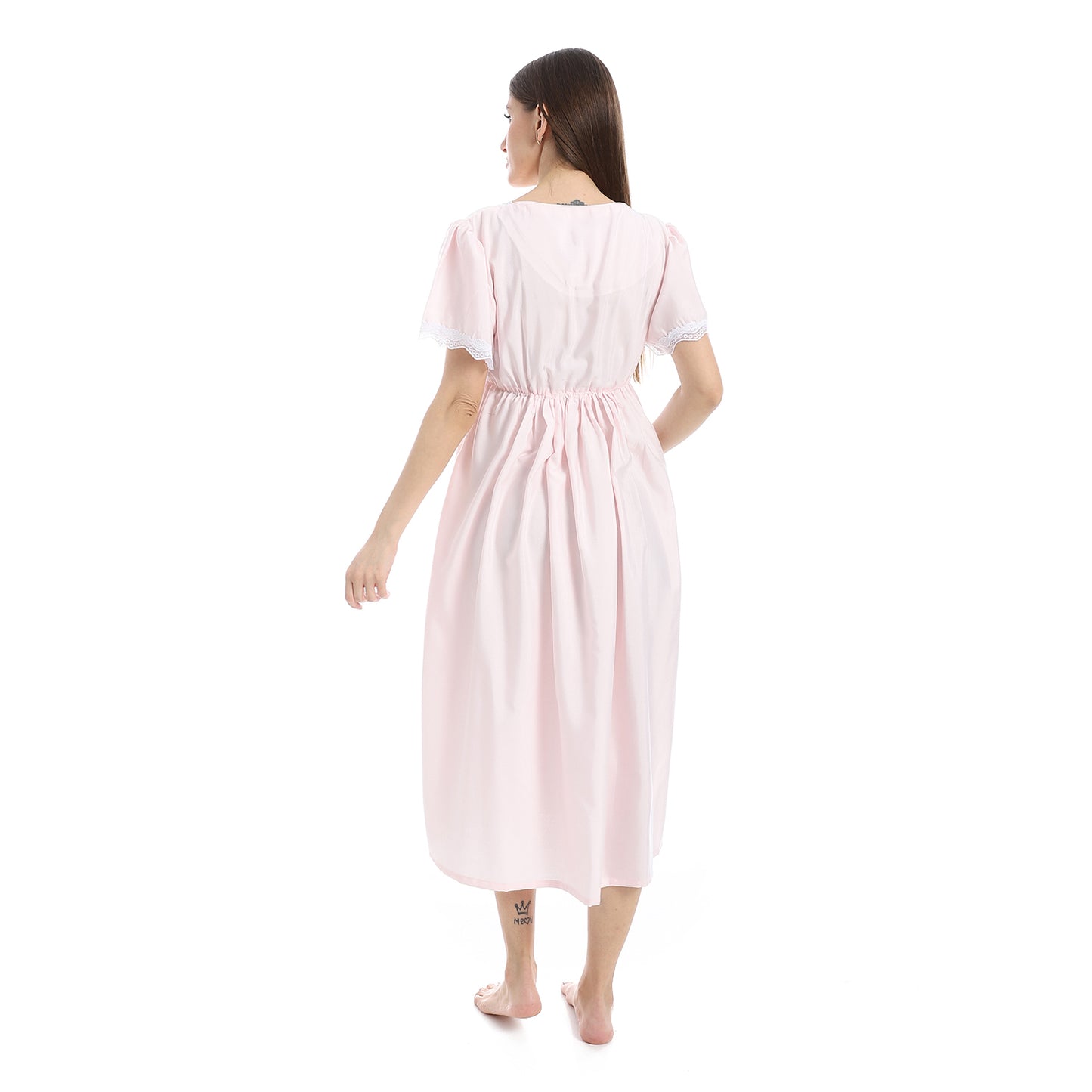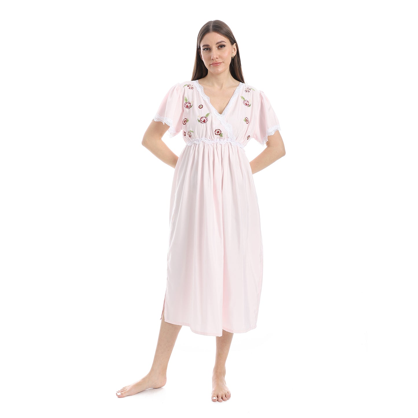 قميص نوم لينوه قصير بالتطريز والدانتيل