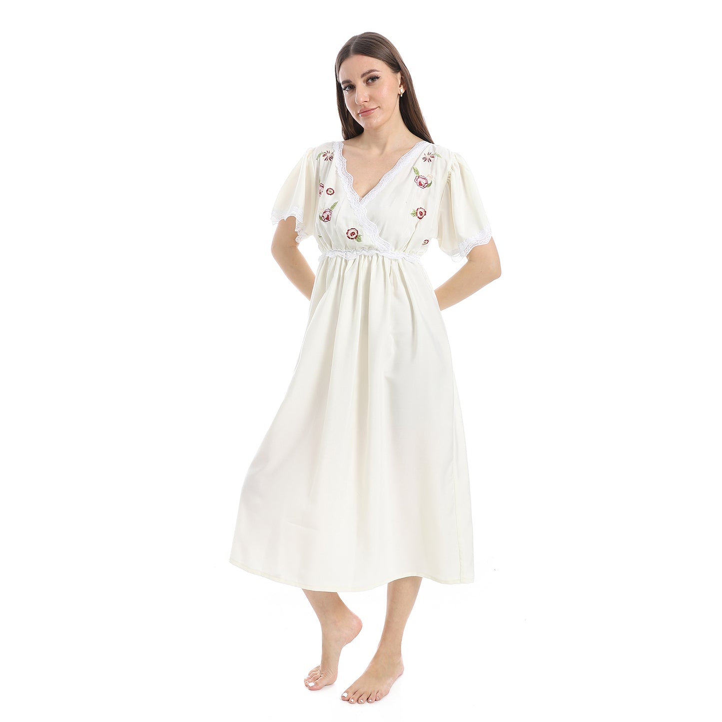 KHW813 قميص نوم قصير مطرز بالدانتيل على الكم