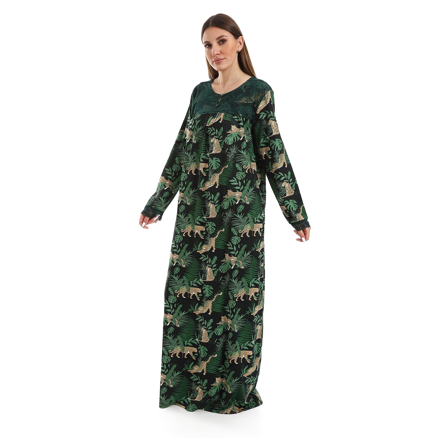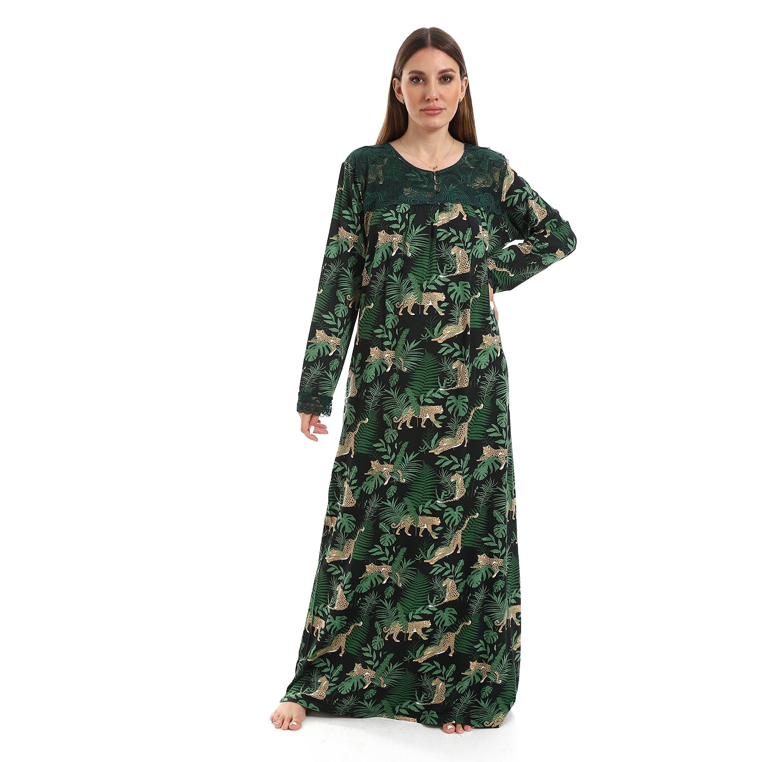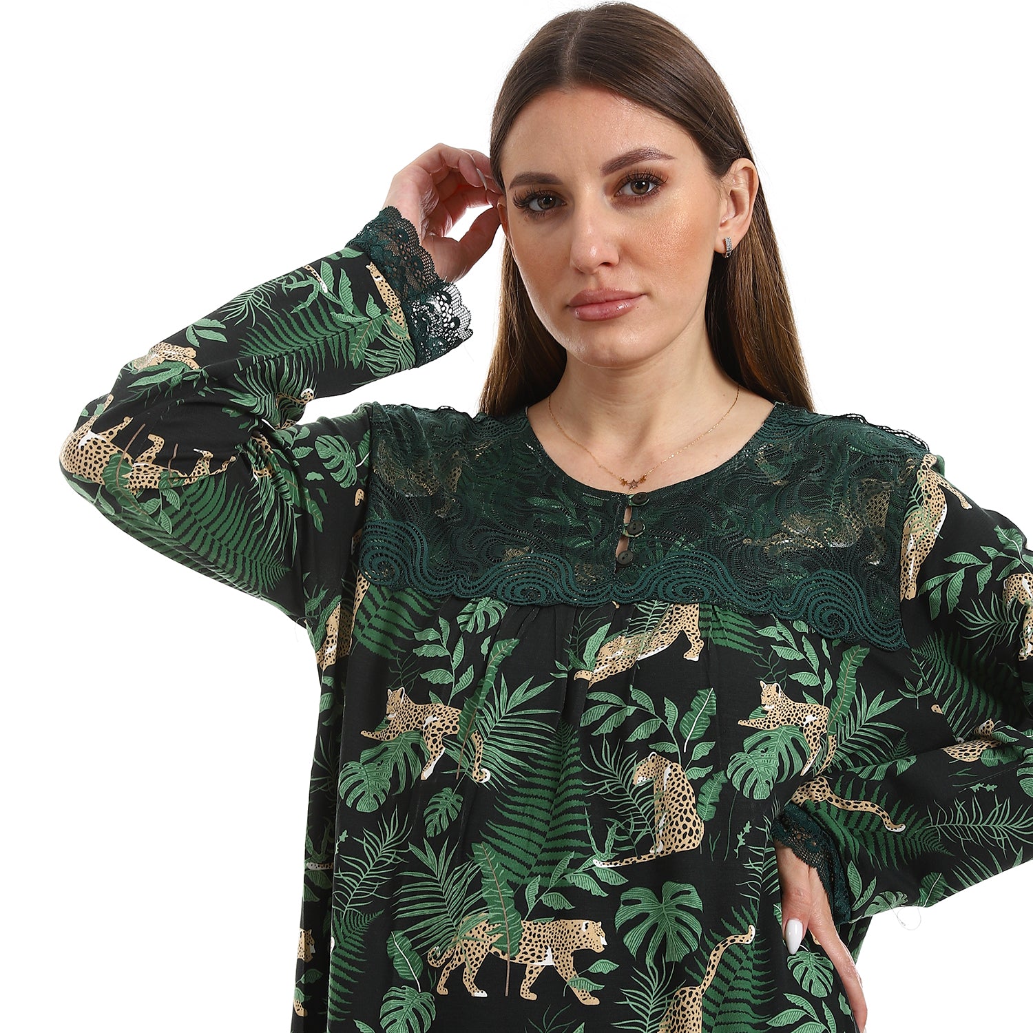 قميص نوم كم طويل  فيسكوز مشجر بالدانتيل